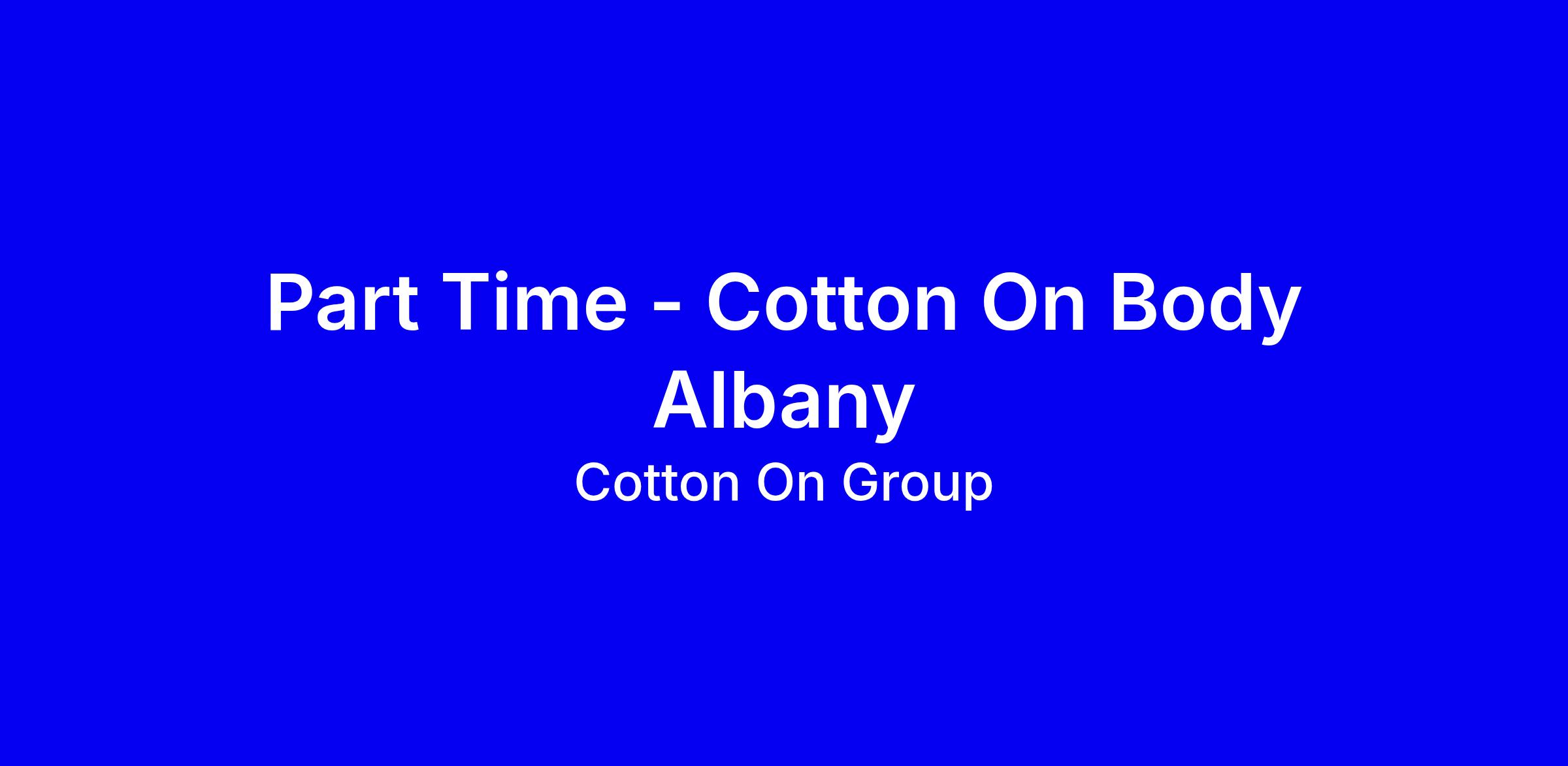 Cotton On Group is hiring part time at Albany for Cotton On Body, seeking Brand Ambassadors to create memorable customer experiences, live the Cotton On values and help keep the store inviting through thoughtful merchandising and replenishment. The role offers 50% discounts across the group, wellness support 24/7, and clear paths for local and global career growth across seven brands, plus family discounts. To apply, spotlight your customer service excellence, fashion sense, teamwork and ability to make a positive community impact, and show how you would drive sales and keep stock fresh. We welcome diverse applicants and provide recruitment support via [email protected].