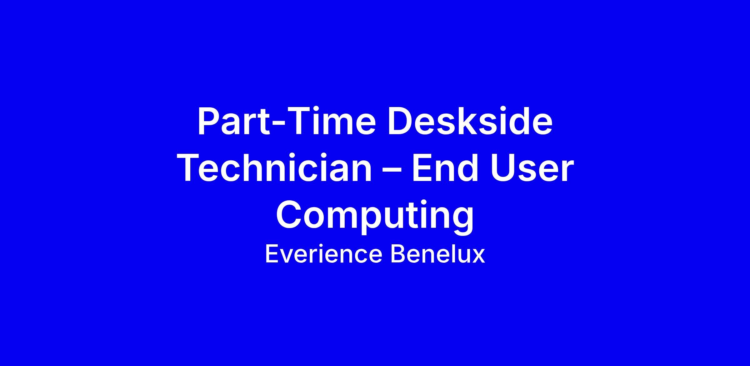 Everience Benelux is seeking a Part-Time Deskside Technician (End User Computing) to deliver onsite, SLA driven support for end user devices and peripherals at corporate locations in Rosendael. You’ll handle incident and problem resolution, repair and maintenance of desktops, laptops, printers, mobile devices, and network connectivity, assist users with LAN/WAN access, and provide VIP support and coordination with sales, operations, and branches. Fluency in Dutch and English is mandatory. To apply, tailor your resume to show hands on EUC troubleshooting, ticketing and problem management, on site support experience, and the ability to explain technical info to non technical users. All applicants welcome, including people with disabilities.