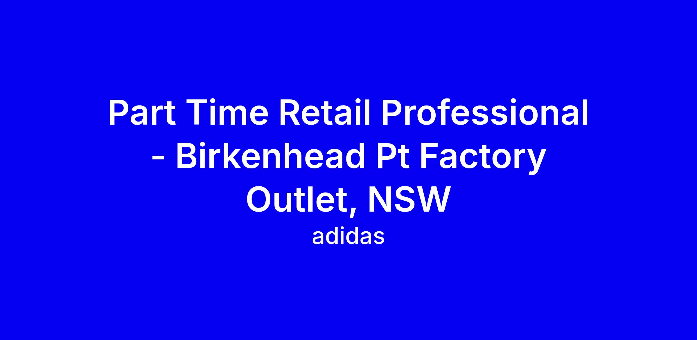 adidas is seeking a Part Time Retail Professional for the Birkenhead Point Factory Outlet in Drummoyne, NSW, on a fixed weekly pattern across weekdays and weekends. The right candidate has solid retail sales or customer service experience, a proactive, energetic mindset, and a genuine connection to sport, with a track record of meeting KPIs and delivering Brand Customer Service. You’ll manage visual merchandising, process deliveries quickly, and keep the full product offer on the floor while living adidas values. To apply, you must have permanent work rights in Australia, be prepared for a pre employment credit and criminal history check, and attach a resume plus a cover letter addressing the requirements and your availability via the online Apply button.