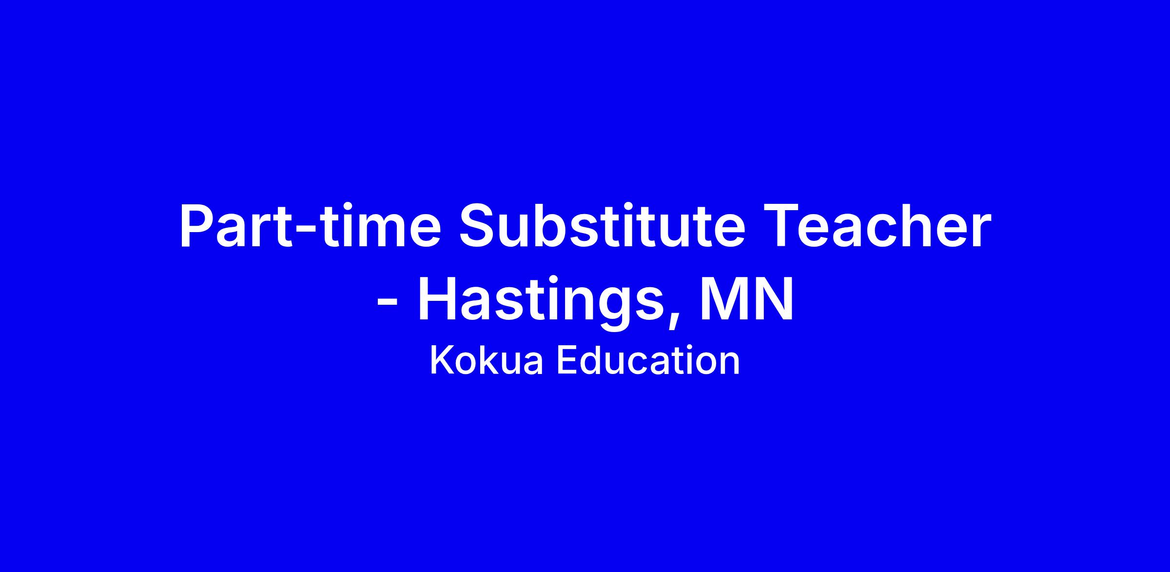 Kokua Education seeks part-time substitute teachers in Hastings for the 2025–2026 year. Expect flexible schedules five days weekly, hours 7:30 am–3:30 pm, and pay $210 per hour depending on credentials, plus license reimbursement and opportunities for full-time roles. Requirements include at least 6 months of experience with students, a bachelor’s degree, a MN Substitute Teaching License or Educator license, reliable transportation, and the ability to pass background checks; if you don’t have a license yet, Kokua guides you through the online process and reimburses costs after you start. Tips: tailor your resume to classroom management and diverse settings, highlight tutoring or volunteering, and align with Kokua’s community focus. Apply now for 2025–2026.