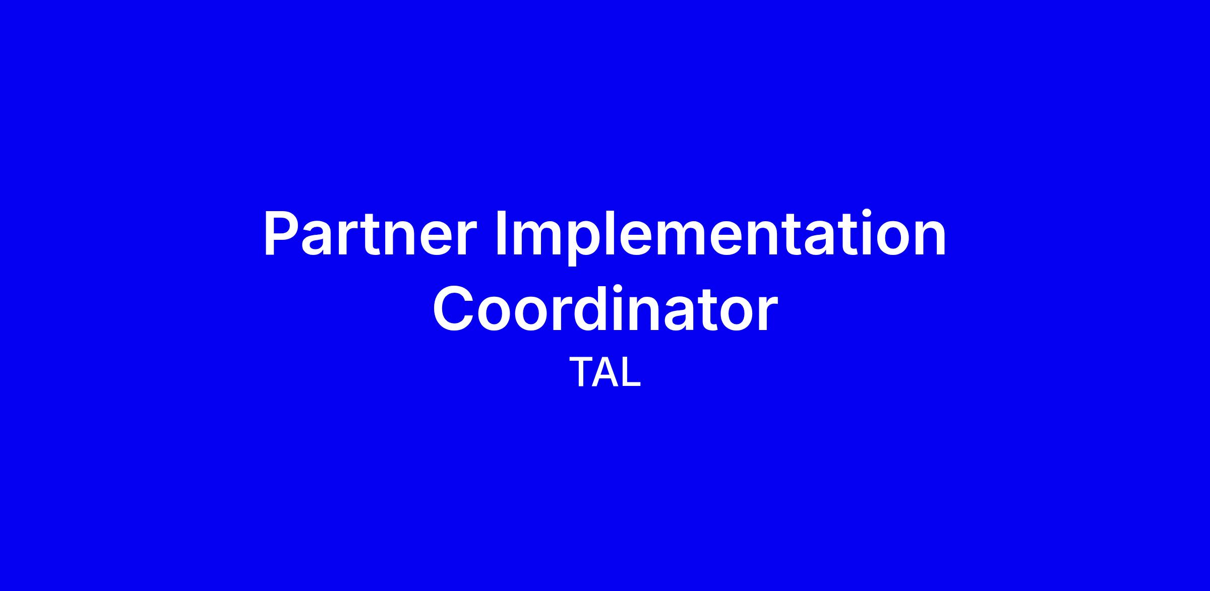 Partner Implementation Coordinator at TAL in Sydney CBD, full-time on site, part of the Growth and Marketing Platforms team and focused on turning partnership opportunities into sustainable value by aligning customer needs with partner objectives and TAL’s product capabilities. You will manage partner onboarding and integration, support contract workflows with Legal, prepare reporting, monitor progress and drive continuous improvement, while building strong cross functional relationships and navigating ambiguity. The ideal candidate has 2 to 5 years in a generalist, client facing or account management role with strong stakeholder coordination, disciplined execution and commercial judgement. To apply, tailor your resume to show successful launches, onboarding and cross team delivery, quantify outcomes and demonstrate alignment with TAL values of respect, commitment and resourcefulness, and if you are an existing TAL employee apply via the SmartRecruiters button in Workday.