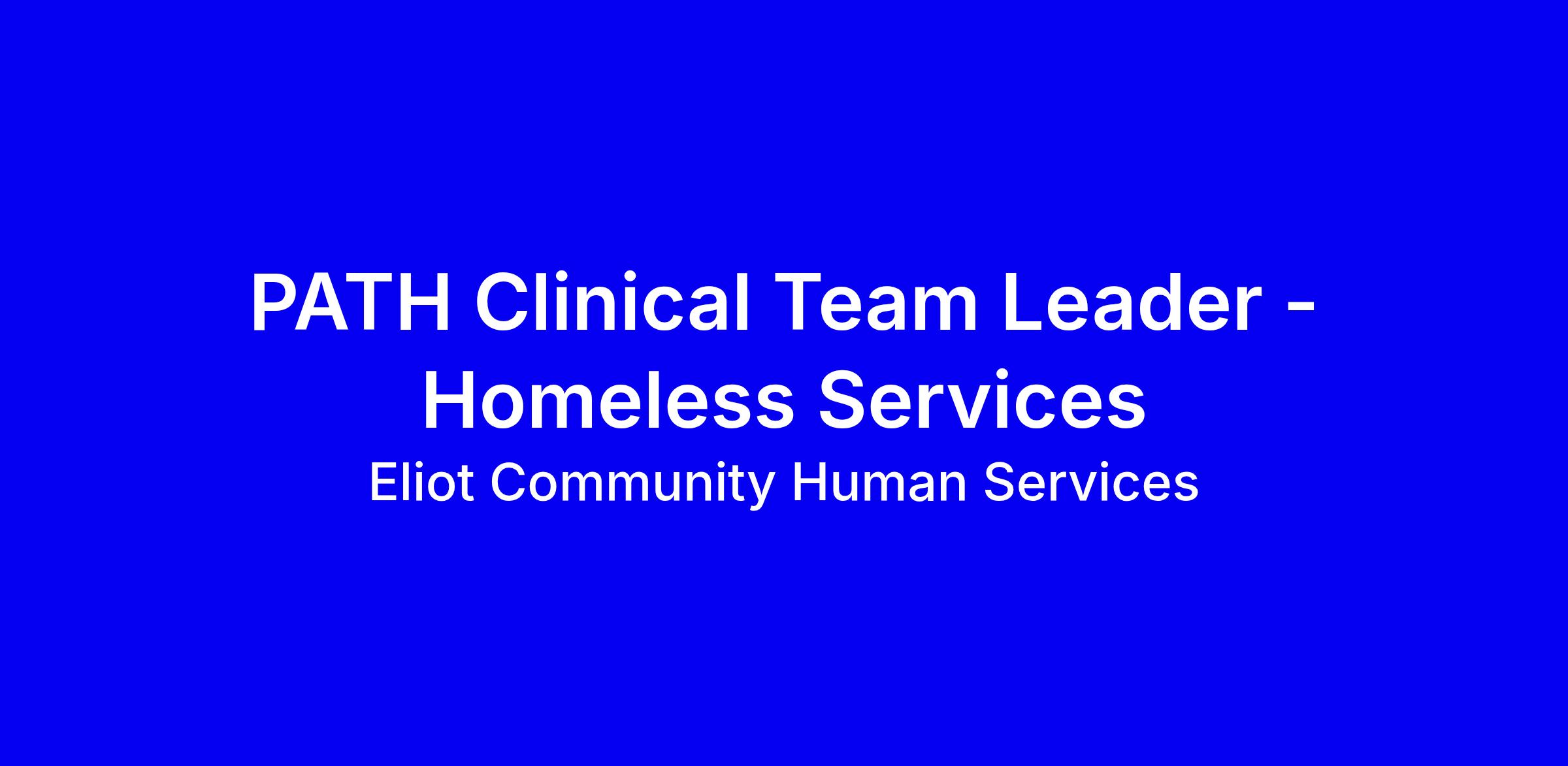 Eliot’s Homeless Services Division is seeking a dedicated Team Lead to join our PATH (Project for Assistance in Transition from Homelessness) Team which offers a wide range of services, including outreach, case management, mental health treatment, housing assistance, and referrals to other resources for adults with serious mental illness, including those with co-occurring substance use disorders.