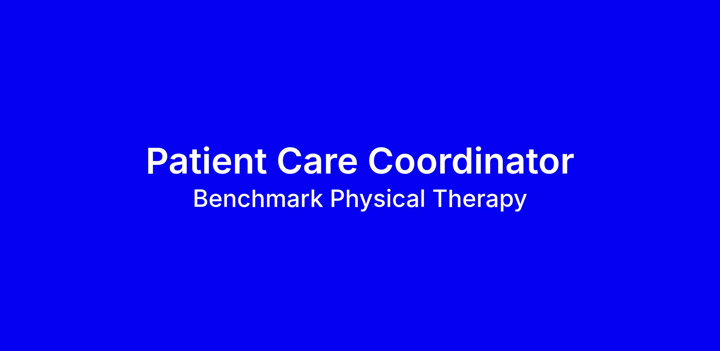 Benchmark Physical Therapy, a brand partner of Upstream Rehabilitation, is looking for a Patient Care Coordinator to join our team in Gainesville, GA.