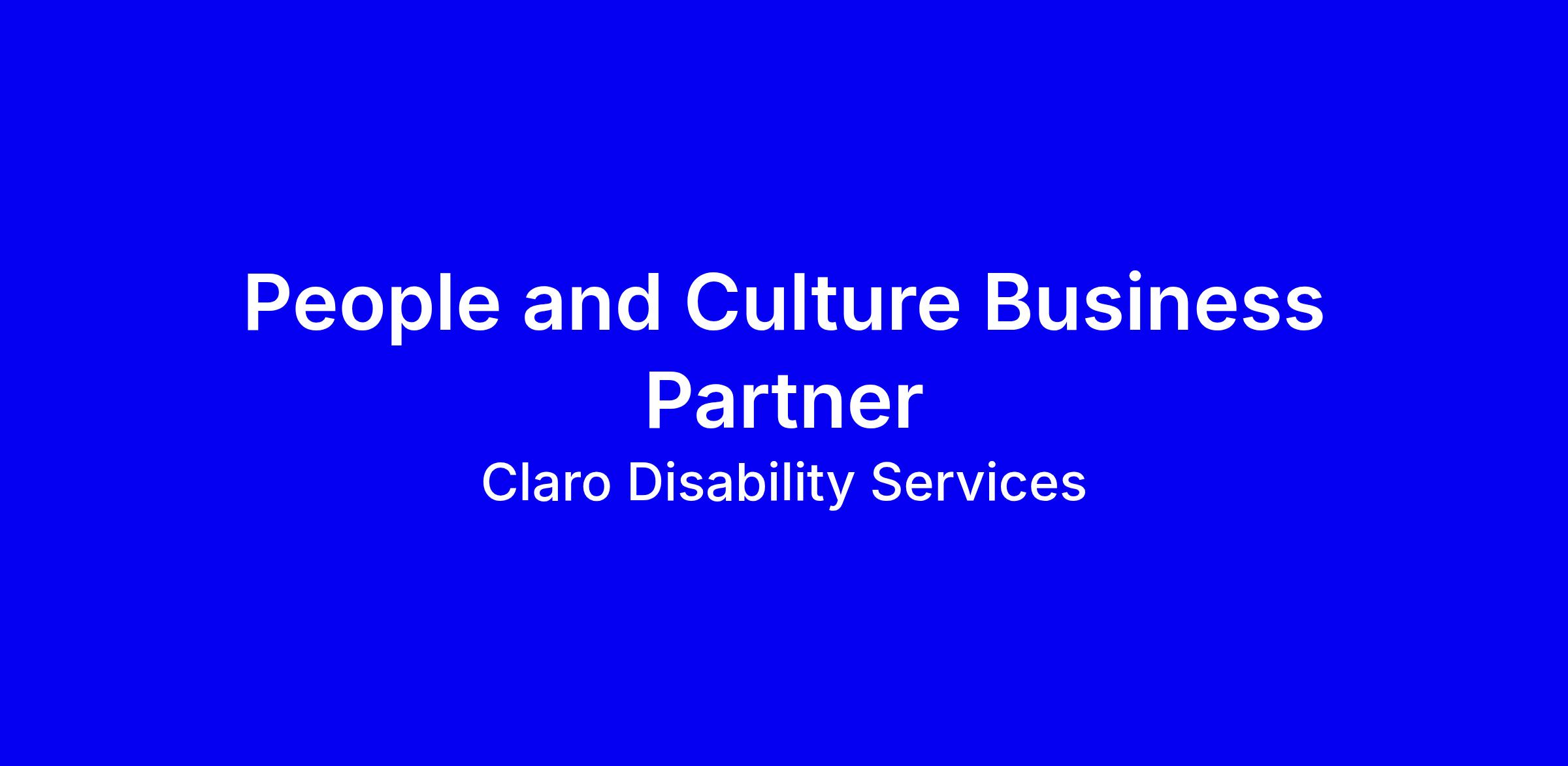 Claro Disability Services is seeking a full-time onsite People and Culture Business Partner in Melbourne to collaborate with leaders, drive change, and champion culture. The ideal candidate has 5+ years in HR/People & Culture within the human services sector, strong business partnering and proven coaching skills, and tertiary qualifications in HR or IR preferred. You will align people strategies with business objectives, guide workplace relations and policy, lead organisational design, and deliver HR metrics while coaching managers. Essentials include current National Police Check, NDIS Worker Screening, and work rights. Apply via the site button; shortlisted candidates may be interviewed early. Equal opportunity employer; tailor your resume to highlight stakeholder management and culture initiatives.