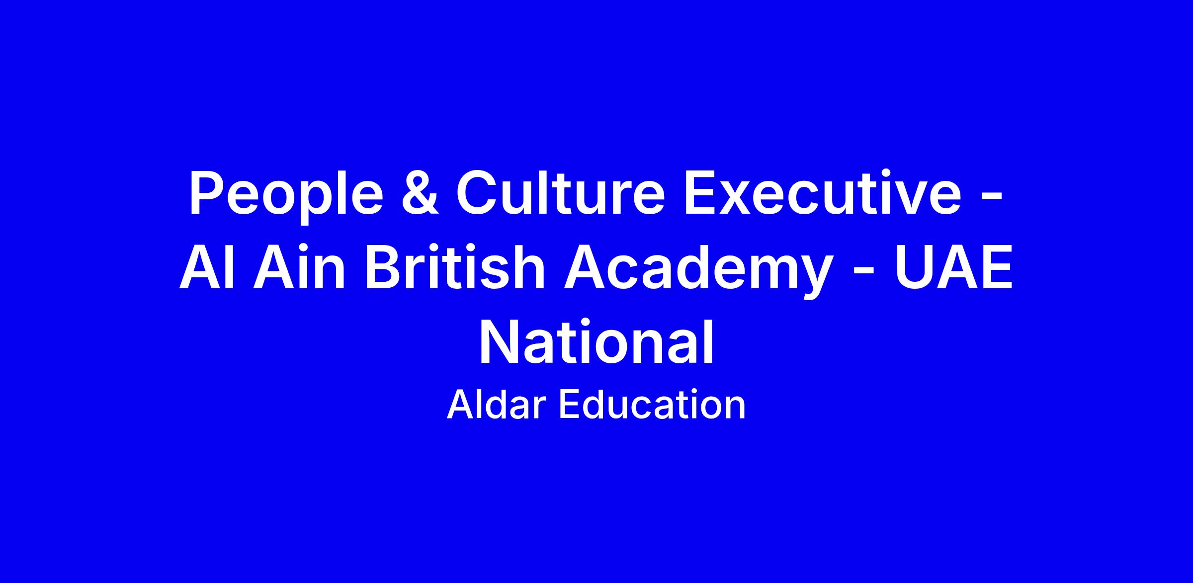 Aldar Education is currently seeking a UAE National People & Culture Executive to join us in Al Ain British Academy. This is an exciting opportunity to join the highly successful Aldar family of schools and to help shape the future of Abu Dhabi’s leading school group.