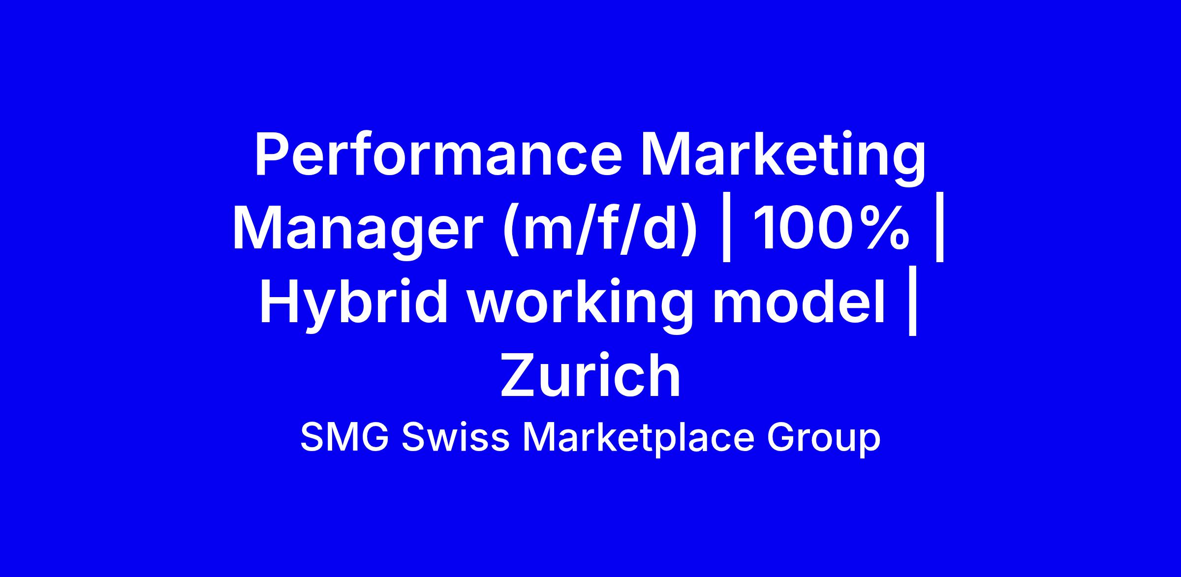 SMG Swiss Marketplace Group seeks a Performance Marketing Manager in Zurich for a 100% hybrid role. Plan and optimize Search Engine Advertising for SMG brands, collaborate with social and display teams, and drive performance via testing. Partner with brands to meet goals and contribute to measurement and attribution. Requirements: native German, fluent English, 6+ years in digital marketing with a strong Paid Search focus, proven Google Ads success; GA4, Looker Studio and Shopping feeds. Benefits include six weeks holiday, hybrid setup, parental leave, travel benefits, transparent pay, and gear. Apply with a detailed CV and supporting documents that highlight paid search wins and include a concise case or metrics.