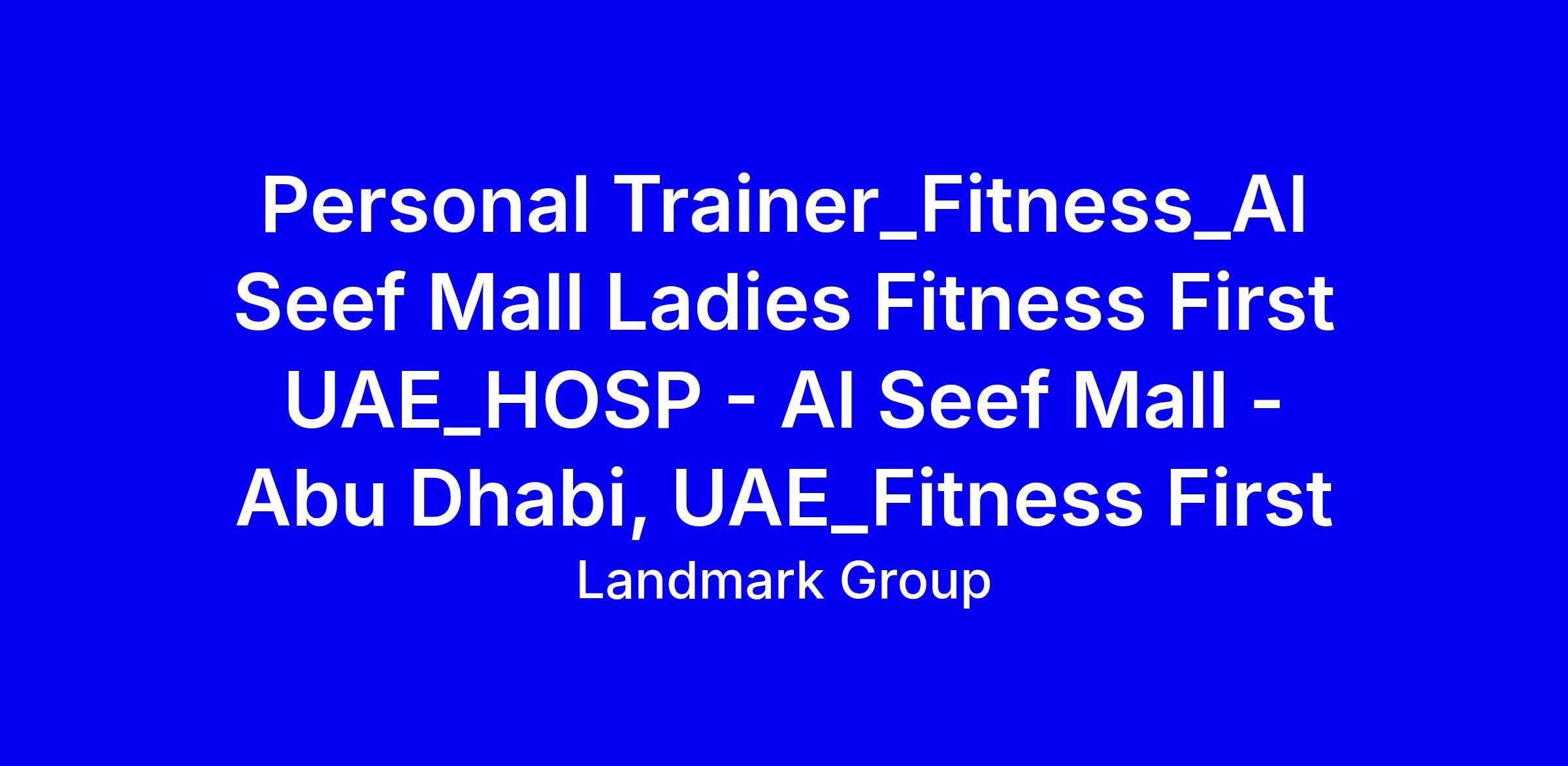 Landmark Group is hiring a Personal Trainer for Fitness First at Al Seef Mall in Abu Dhabi, offering a fulltime onsite role within the Fitness First UAE network. This position sits in a leading fitness brand within a diversified retail and hospitality group with 2200+ stores and a proven track record. The role requires delivering personalized fitness programs, leading group classes when needed, ensuring safety and progression, and driving member engagement and retention. To apply, highlight certifications (NASM, ACE or equivalent), UAE work eligibility, client results, a friendly sales oriented approach, and a tailored cover note linking your experience to Fitness First values.