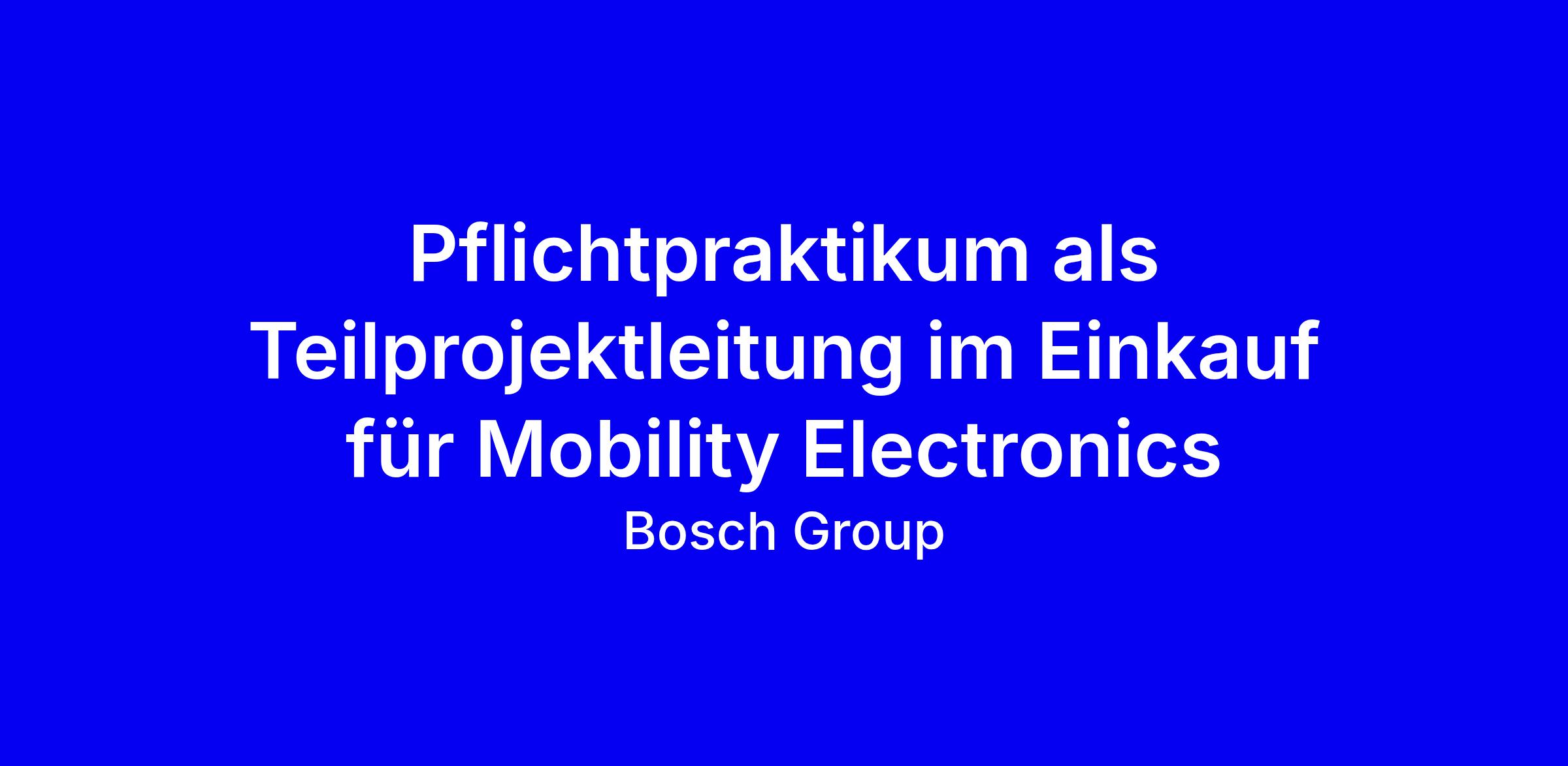 Dieses sechsmonatige Pflichtpraktikum bietet eine Teilprojektleitungsrolle im Einkauf für Mobility Electronics bei Bosch in Bühl, onsite, Beginn nach Absprache. Als Junior-Projektmanager:in übernimmst du Verantwortung für Teilprojekte von Neuprodukten bis zur Serienbetreuung, koordinierst Lieferantenbewertungen von Anfrage bis Angebot und arbeitest im globalen Einkaufsverbund in internationalen Teams. Du erstellst eigenständig Analysen und KPIs, entwickelst Projektpläne und verfolgst Meilensteine, vertrittst Bosch gegenüber Lieferanten und bringst Ideen zur kontinuierlichen Verbesserung ein. Voraussetzungen: Studium in Betriebswirtschaftslehre oder Wirtschaftsingenieurwesen, Projekterfahrung, schnelle Auffassungsgabe, verhandlungssicheres Deutsch und gutes Englisch, Immatrikulation, sechs Monate, gemäß SPO. Bewerbung mit Lebenslauf, Notenspiegel, Immatrikulationsbescheinigung, Prüfungsordnung und ggf. Arbeits- und Aufenthaltserlaubnis. Kontakt: Stefanie Huber. Vielfalt wird gefördert; zeig Initiative und Teamgeist im internationalen Einkauf, und betone in deiner Bewerbung konkrete Projekte, KPI-Erfolge sowie Lernbereitschaft.