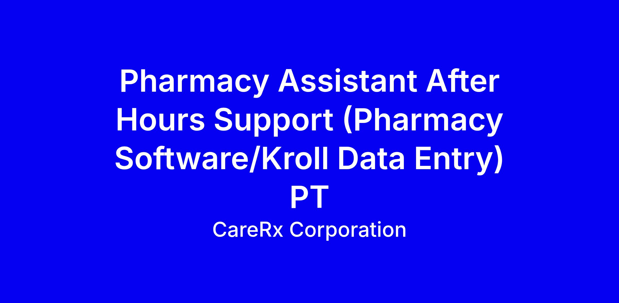 CareRx is looking for an After Hours Pharmacy Assistant (Pharmacy Software/ Kroll Data Entry) to join our Pharmacy team in supporting a group of LTC Homes and Retirement Communities. The Pharmacy Assistant will assist with the preparation, packaging and organization of medication deliveries, while supporting daily operations in accordance with the Pharmacy Standards of Practice.