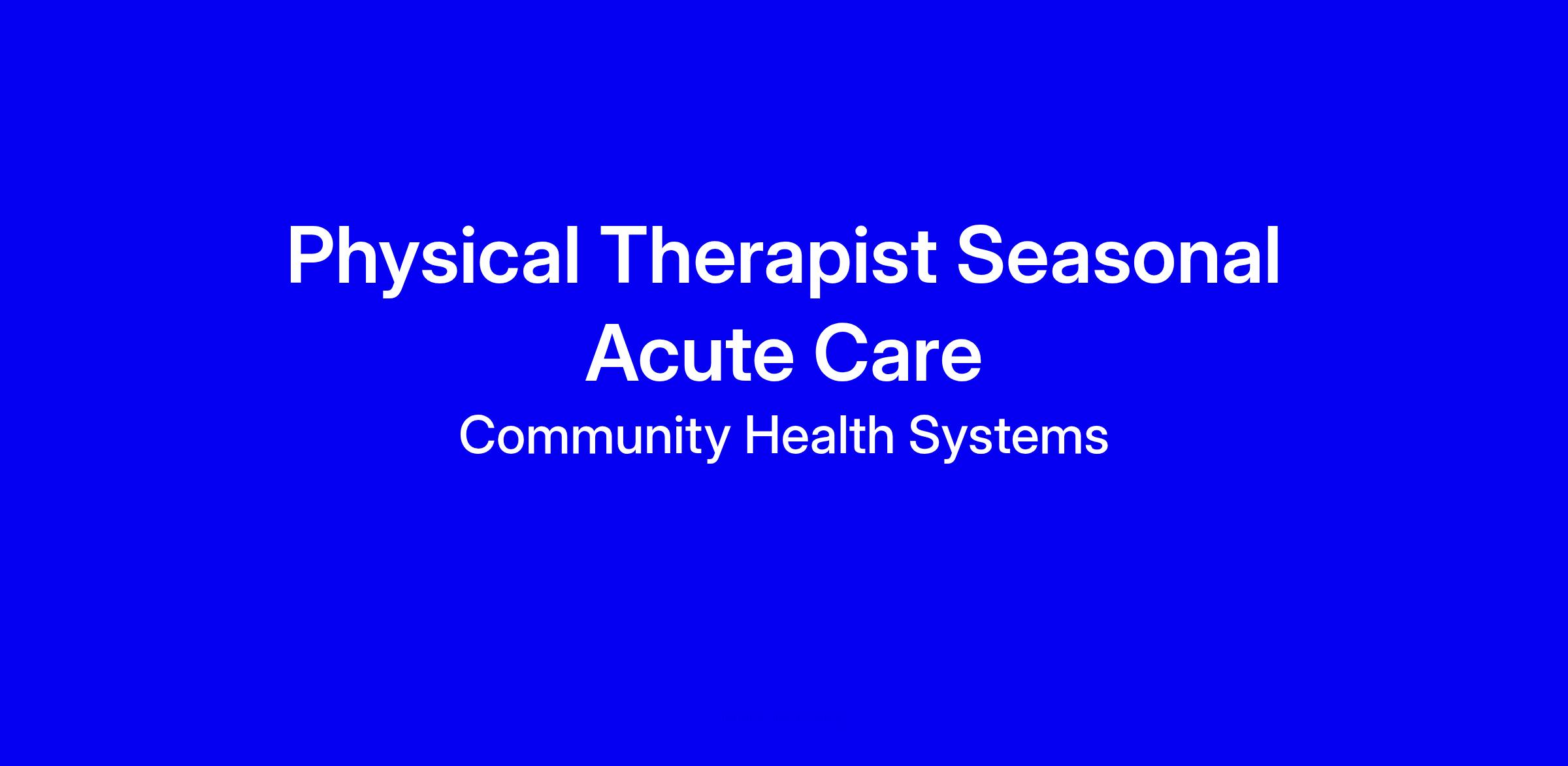 Physical Therapist Seasonal Acute Care