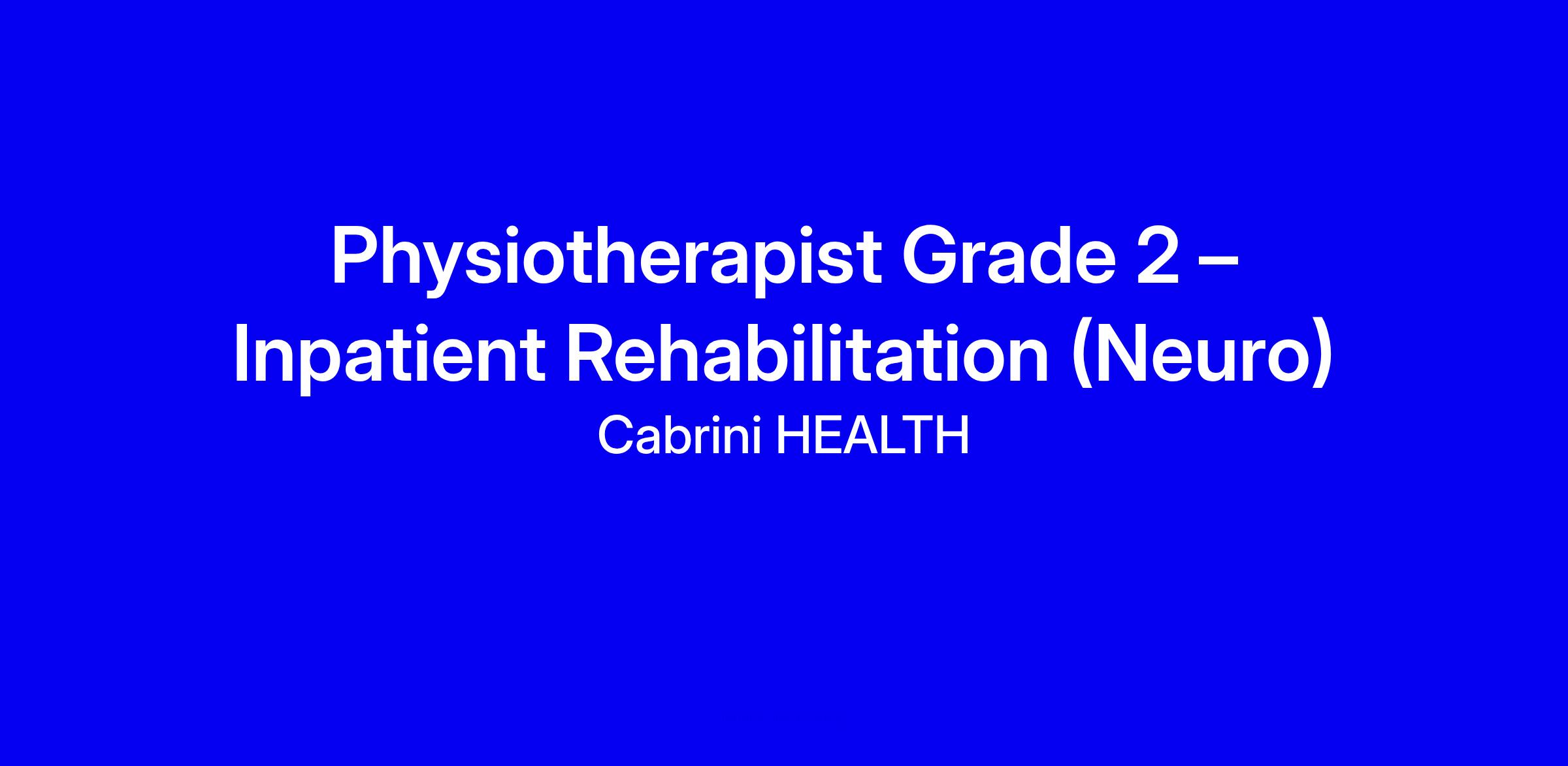We are looking for a dynamic and enthusiastic Grade 2 Neurological Physiotherapist who is passionate about leading high quality patient-centred care in a sub-acute setting, in line with our Cabrini mission and values.