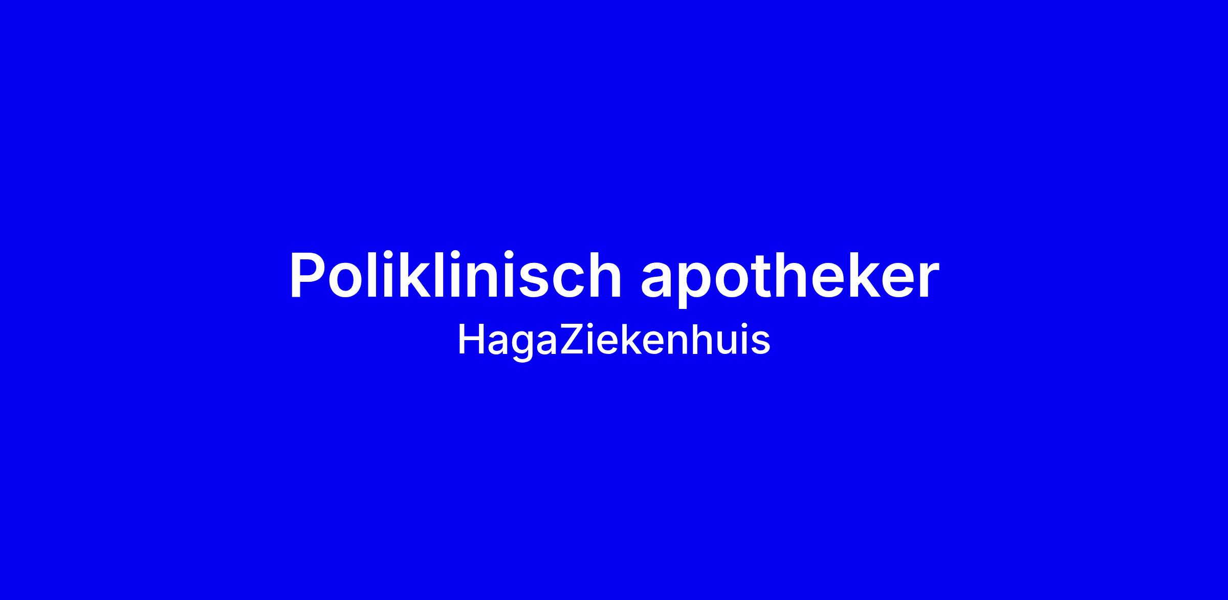 De apotheek van het HagaZiekenhuis bestaat uit de ziekenhuisapotheken van locaties Den Haag en Zoetermeer en de poliklinische apotheek in Den Haag. De HagaApotheek is een toonaangevende poliklinische apotheek met landelijke dekking. De speerpunten zijn o.a. cystic fibrosis, oncologie en nefrologie. Onze specialistische zorg reikt tot achter de voordeur van de patiënten thuis, inclusief toedieningen door onze eigen verpleegkundigen. De vakgroep Farmacie is al vele jaren gefuseerd (klinisch, poliklinisch, Den Haag en Zoetermeer) en werkt vanuit de indicatiegerichte units nauw samen voor het creëren van optimale waarde van farmaceutisch-specialistische zorg zowel thuis als in het ziekenhuis. Door de verbinding met Apotheek Haagse Ziekenhuizen (AHZ) zijn ook bereiden en TDM/toxicologie dicht bij huis. In de apotheek van het HagaZiekenhuis werken meer dan 150 collega’s. De apotheek heeft 5 opleidingsplaatsen voor AIOS-ziekenhuisfarmacie.