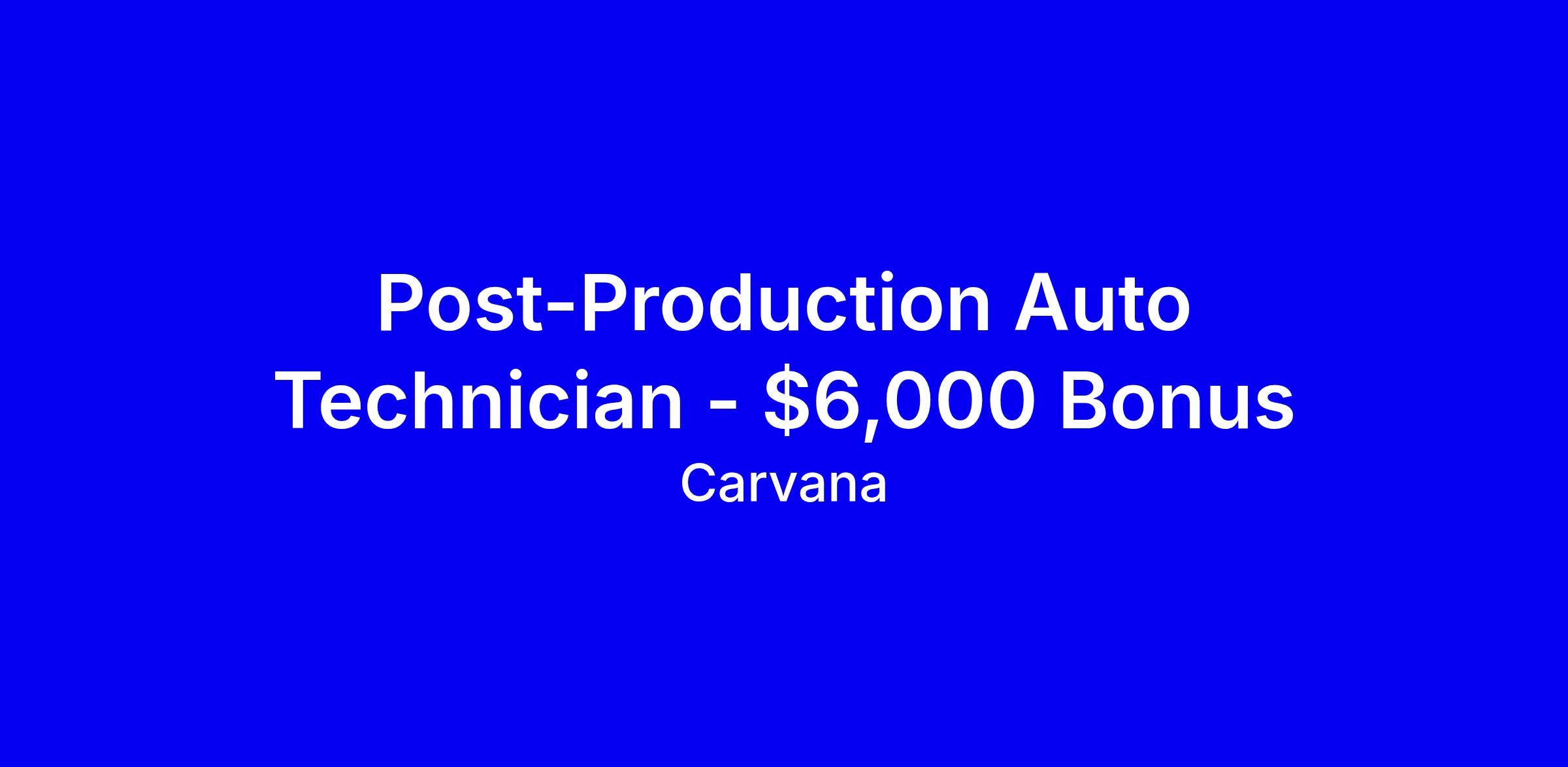 Carvana is hiring for an Entry-Level Post-Production Auto Technician in Chesterfield, ENG, with a $6,000 bonus and competitive pay plus superb perks like 100% company-paid health premiums, a 401(k) match, a vehicle purchase discount, generous PTO including your birthday, ASE and tool reimbursement, and tuition or student loan support. The role focuses on light maintenance, fluid checks, and vehicle inspections during post production, with training to help you advance. Safety is a priority in a fast paced environment; you must lift up to 60 pounds, hold a valid driver’s license, and be 18 or older. Apply online or call (888) 508-4749. Visa sponsorship not available.
