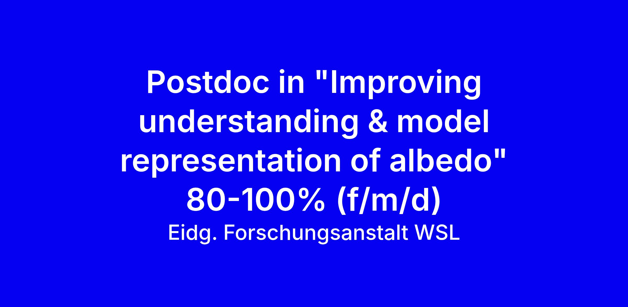 Seeking a 3-year postdoc in improving understanding and model representation of albedo, 80-100%, for the Snow and Atmosphere unit in Davos. The role will implement improved albedo and radiative transfer parameterizations for glacier energy balance models used in simulations, collaborating with a PhD student developing process-scale radiative transfer in firn while you advance larger-scale representations. The project combines field observations from the Swiss Alps and Central Asia, lab work and modelling, as part of the deFIRN SNSF program, under Ruzica Dadic. Requirements: PhD in environmental science, geoscience, engineering, physics or related field with experience in computational data analysis or modelling. Apply via the SLF webpage with a motivation letter, CV and transcripts; emails not accepted. Start between 1 April and 30 September 2026. For questions contact [email protected]. WSL values diversity and inclusion.