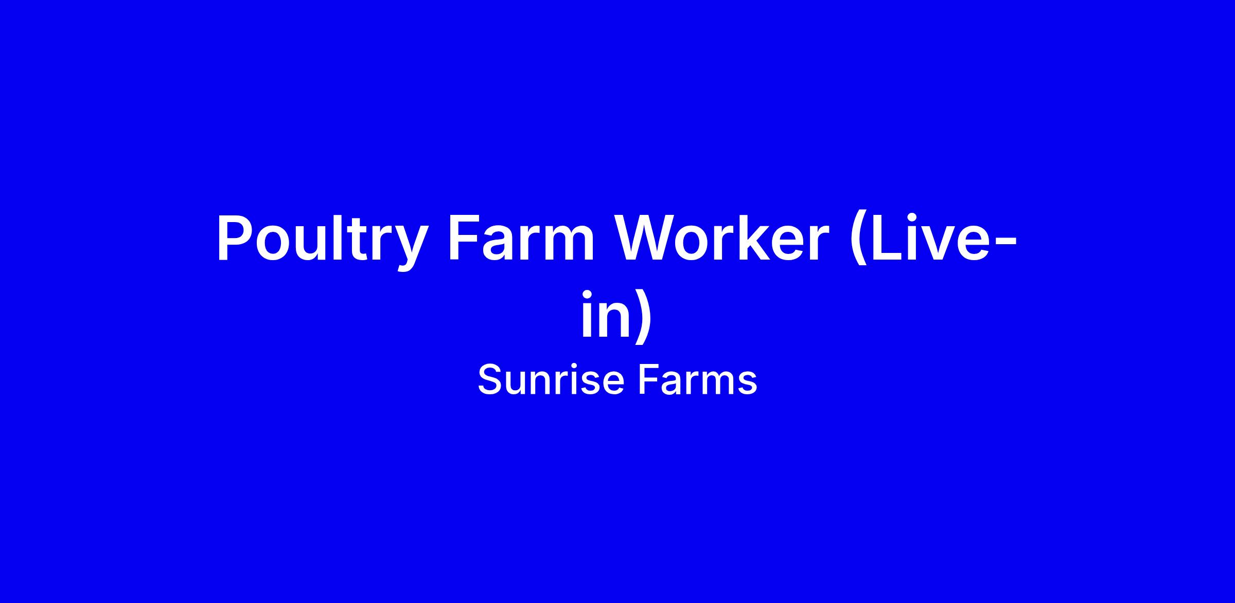 Sunrise Farms is seeking a full-time live-in Poultry Farm Worker for Abbotsford, offering comfortable housing and utilities covered. The role involves daily farm chores and caring for 70,000 to 150,000 birds depending on location, plus general yard maintenance. Ideal candidates have poultry farm experience, can work well in teams or independently, and are proficient with equipment such as Bobcats and tractors; a valid driver's license is required. Sunrise Farms values diverse applicants and offers equal opportunity; salary varies by region and experience. To apply, tailor your resume to highlight hands-on poultry and equipment experience, include references, and mention your willingness to live onsite.
