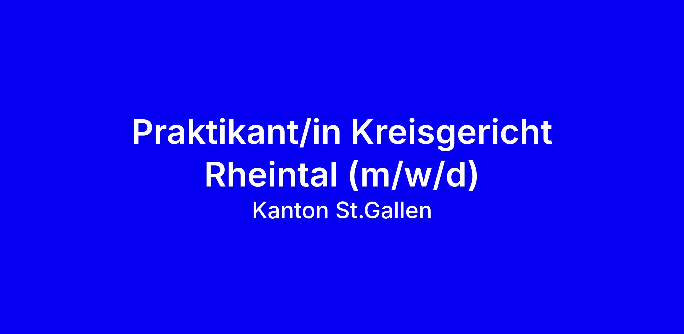 Der Kreisgericht Rheintal in Altstätten sucht zwei motivierte Juristinnen und Juristen für ein einjähriges Praktikum vom 1. November 2026 bis zum 31. Oktober 2027, 100 Prozent Pensum. Sie bekommen Einblick in die richterliche Entscheidungstätigkeit eines erstinstanzlichen Gerichts, Mitwirkung in Zivil-, SchKG- und Strafsachen, das Erarbeiten von Referaten, das Verfassen von Einzelrichter- und Kollegialgerichtsentscheiden sowie das Protokollieren der Verhandlungen mit beratender Stimme. Erwartet wird ein abgeschlossenes MLaw, selbständiges und präzises Arbeiten, Freude an Teamarbeit und Diskretion. Wir bieten eine praxisnahe Vorbereitung auf das st.gallische Anwaltspatent, interessante Aufgaben, vielfältige Einblicke in die Gerichtspraxis, einen zentralen Arbeitsplatz und ein kollegiales Team. Bewerben Sie sich gern und bringen Sie relevante Beispiele aus Studium oder Praktika mit; Fragen an Livia Wenaweser, Tel. 058 229 83 80.