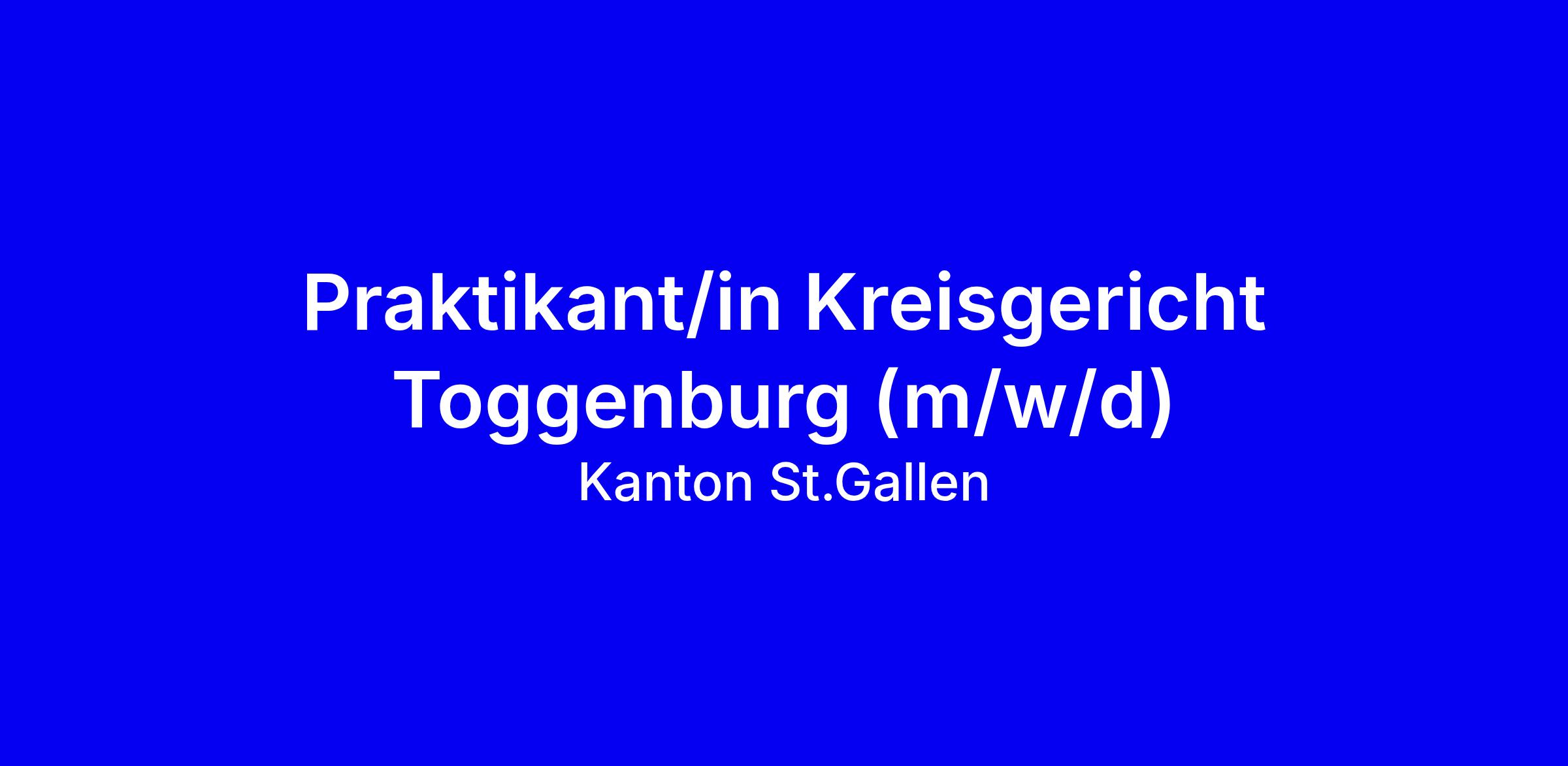 Das Kreisgericht Toggenburg in Lichtensteig bietet zwei einjährige Praktikumsstellen für Juristinnen und Juristen (100% Pensum) vom 1. Oktober 2026 bis 30. September 2027. Sie erhalten Einblick in die richterliche Entscheidtätigkeit eines erstinstanzlichen Gerichts, arbeiten in Zivil-, SchKG- und Strafsachen mit, erarbeiten Referate, protokollieren Verhandlungen mit beratender Stimme und verfassen Einzelrichter- sowie Kollegialgerichtsentscheide. Erwartet wird ein abgeschlossenes juristisches Masterstudium, selbstständiges und präzises Arbeiten, Freude an Teamarbeit und Diskretion. Wir bieten eine Vorbereitung auf das st.gallische Anwaltspatent, abwechslungsreiche Aufgaben, ein kollegiales Team und attraktive Arbeitsbedingungen. Bewerbungen richten Sie an Brigitte Eberhard Rogenmoser, Hauptgasse 21, 9620 Lichtensteig, Tel 058 229 98 98.