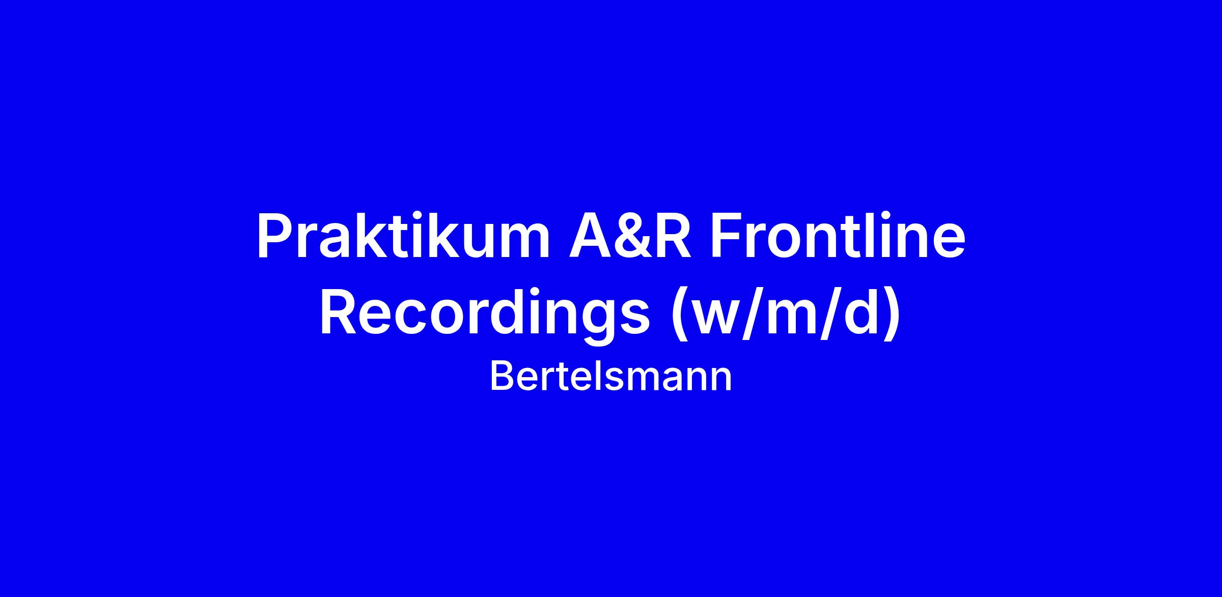 Praktikum A&R Frontline Recordings