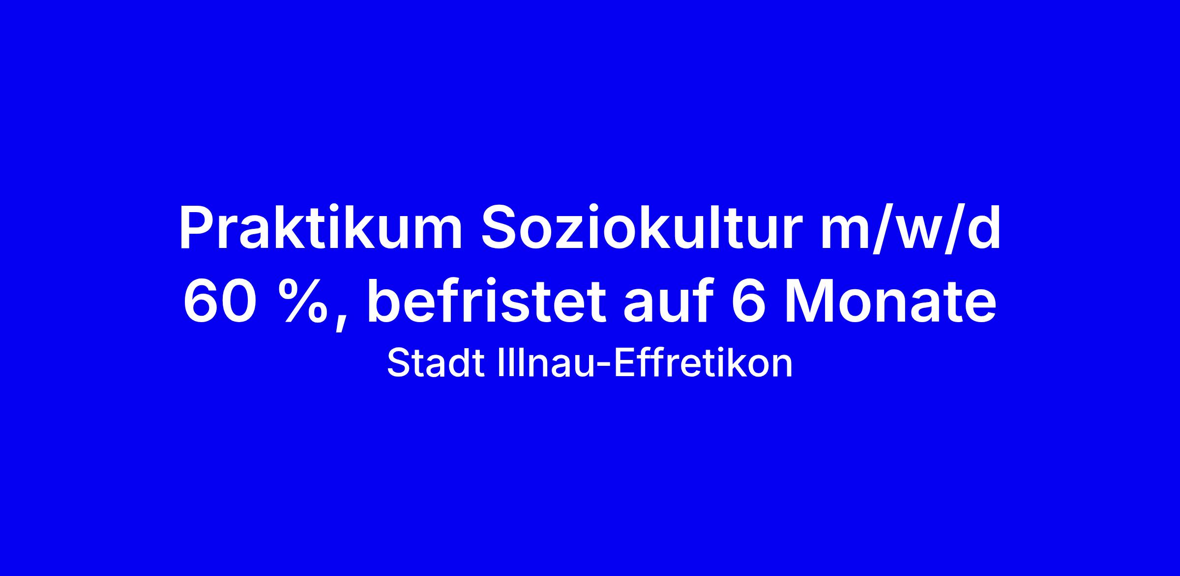 Die Stadt Illnau-Effretikon bietet ein Praktikum Soziokultur m/w/d 60 %, befristet auf 6 Monate, Start 1. September 2026 oder nach Vereinbarung. Sie begleiten Jugendliche und junge Erwachsene im Jugendhaus und Studio, arbeiten an Projekten zur Aufwertung des öffentlichen Raums mit, übernehmen Projektleitung und Entwicklung, nehmen an Teamsitzungen und Supervisionen teil und vernetzen sich mit Akteuren der Soziokultur. Erwartet wird idealerweise eine studienbegleitende Ausbildung in soziokultureller Animation oder sozialer Arbeit, Bereitschaft zur Arbeit Mittwoch bis Samstag, Kontaktfreude, Teamfähigkeit, Kreativität und Offenheit gegenüber Lebenswelten. Bewerben Sie sich online; bei Fragen kontaktieren Sie Lisa Weiller, Tel. 052 354 23 45. Mehr Infos unter www.ilef.ch und www.soziokultur-ilef.ch.