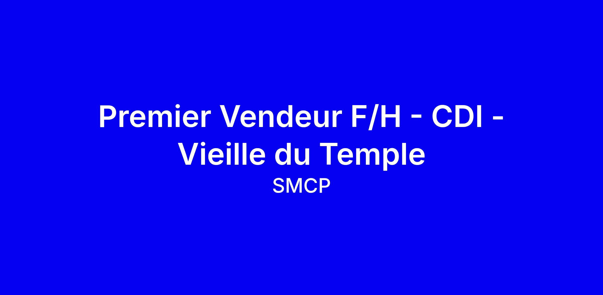 Nous recrutons un Premier Vendeur F/H en CDI temps plein pour rejoindre notre point de vente situé en plein coeur du Marais, rue Vieille du Temple à Paris.