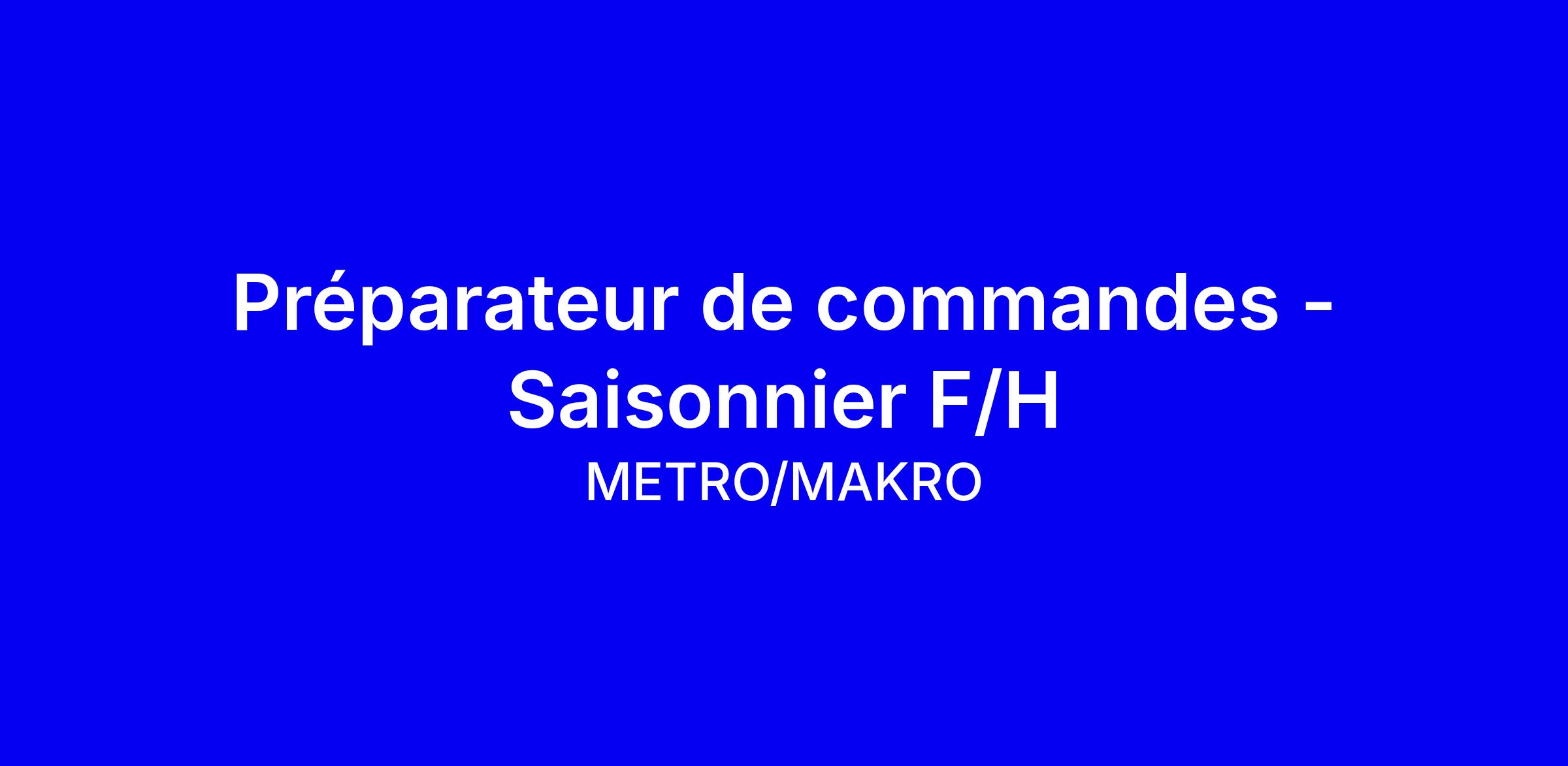 METRO recherche un Préparateur de commandes saisonnier F/H à Avignon pour réceptionner les commandes, réaliser le picking, l’emballage et l’étiquetage, assurer la relation client et saisir les articles dans le logiciel de facturation. Sous la supervision du Manager, vous contribuerez à la satisfaction des professionnels et aux résultats du service dans un environnement frais. Profil recherché: organisé, réactif, dynamique et orienté service; vous aimez le contact client et travaillez bien en équipe. Avantages: intégration adaptée, formation continue, congés spéciaux, remboursement partiel du transport, salaire 13 mois, variable et participation. Pour postuler, mettez en valeur votre expérience en gestion des commandes et votre disponibilité saisonnière, puis postulez sur le site METRO.