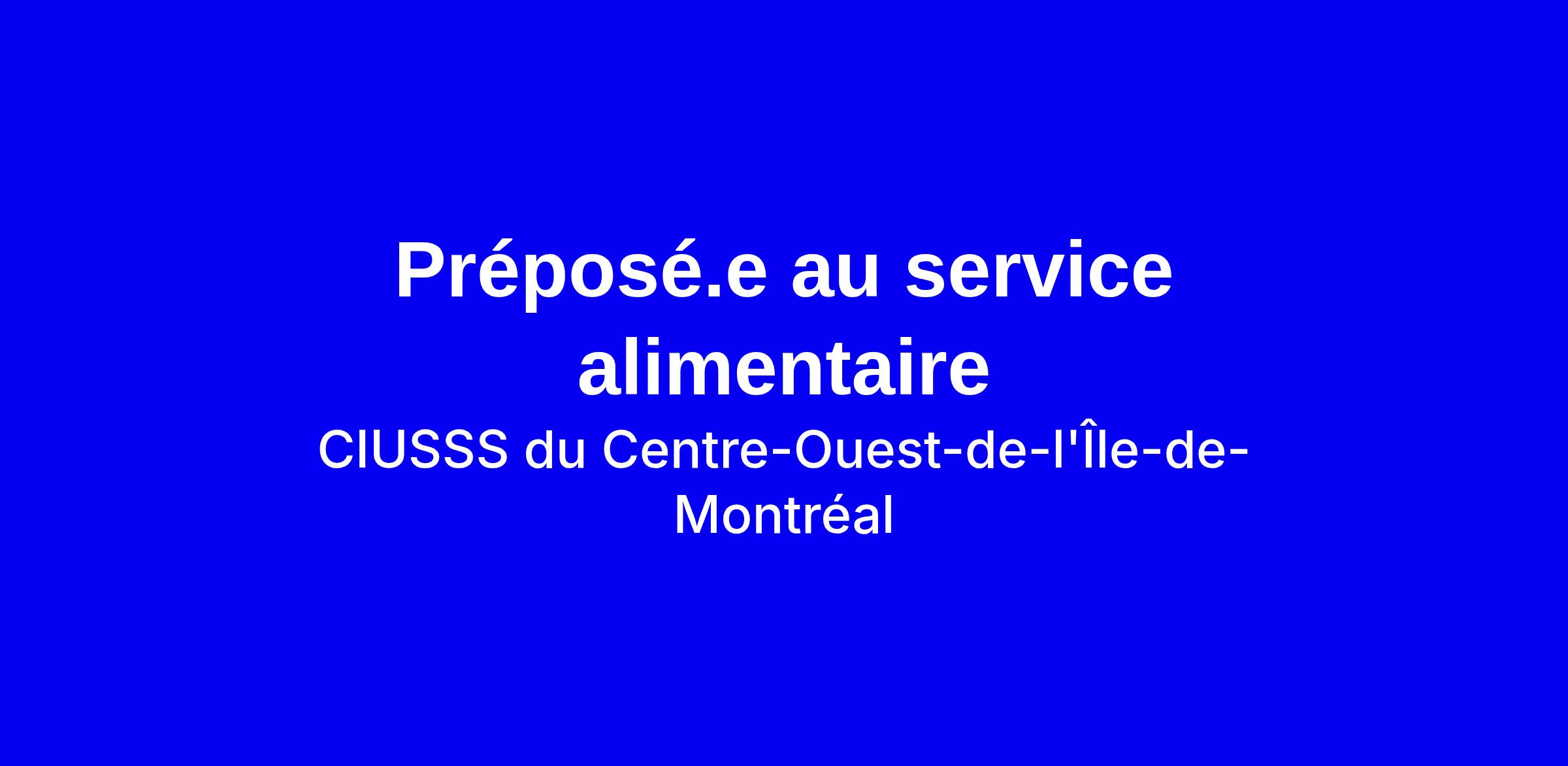 Dessinez votre carrière au sein d'un établissement qui place l'humain au cœur de ses priorités. Le CIUSSS Centre-Ouest de Montréal offre un milieu de travail stimulant où la diversité des perspectives enrichit nos pratiques et où le leadership de proximité favorise votre épanouissement professionnel.Description de l’emploi:Les principales responsabilités.En choisissant de venir dessiner votre carrière au sein de notre équipe avec ce rôle essentiel de notre écosystème de soins de santé, voici les responsabilités pour lesquelles vos talents seront mobilisés de façon quotidienne.Production- Assister les cuisiniers et les aide-cuisiniers dans leurs tâches- Peser les aliments et les épices- Offrir une aide générale en cuisineDistribution- Assembler les plateaux repas pour les patients- Assurer le transport et la répartition des plateaux dans les unités de soinsCafétéria- Préparer et à assembler les plateaux-repas- Préparer l’aire de service pour la clientèle mobile- Tenir la caisse-enregistreuse- Répondre aux demandes des clients.De plus, l’entretien des aires de travail et des appareils de cuisine (poêles, vaisselle, etc.) feront partie de vos tâches.Avantages distinctifs:Pourquoi choisir de joindre notre équipe? Voici le top 3 des éléments qui, selon nous, feront la différence dans votre quotidien, pour ne nommer que ceux-ci :* Contribuez à nos initiatives de responsabilité sociale axées sur le soutien des communautés et ayez un impact positif sur la communauté. * Opportunités de faire progresser votre carrière. * Environnement de travail axé sur le bien-être des employés.
