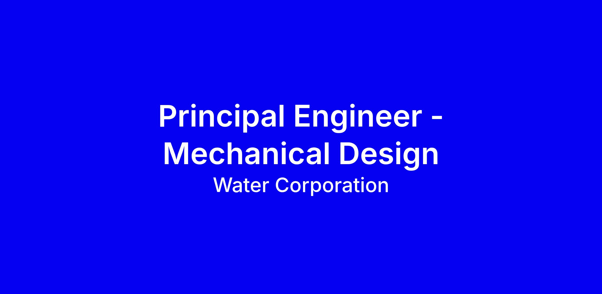 We have a permanent opportunity for a Principal Engineer joining our Mechanical Design team. You’ll be part of the team that undertakes, leads and delivers quality planning, definition, design and design management services on project across WA. As a technical leader, you’ll also provide a centre of expertise technical support and advice to planners, designers, constructors and operators as well as set our standards. This is a fantastic opportunity to help Water Corporation adopt more sustainable, reliable and easier approach to providing one of life's essentials – water. The role will be based in our Leederville office and will report to our Team Lead - Mechanical Design.