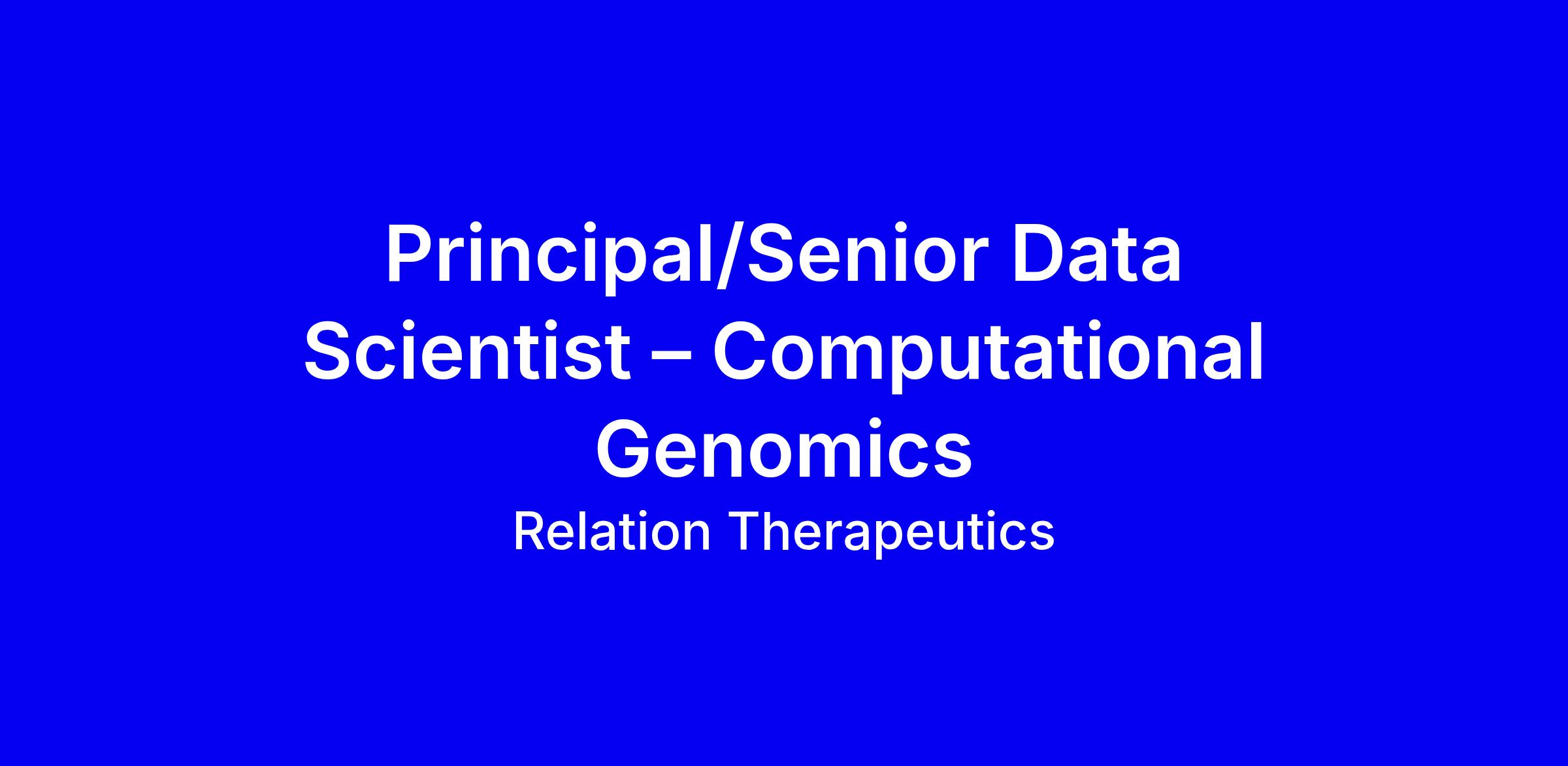 Relation Therapeutics seeks a Principal or Senior Data Scientist in Computational Genomics to drive multi-omics insights for drug discovery on a cross‑indication team. You will develop scalable workflows for multi-omics and population genetics data, lead multi‑modal integration to uncover disease biology and actionable targets, and design statistical models for genomics and transcriptomics while partnering with experimental and machine learning groups. A PhD in genomics or a related field, post‑PhD experience (ideally in biotech or pharma), and strong Python and R skills with HPC experience are essential. Highlight leadership, independent delivery, impactful publications, clear communication to stakeholders, and a demonstrated passion for patient outcomes, and emphasize readiness to work onsite in London.