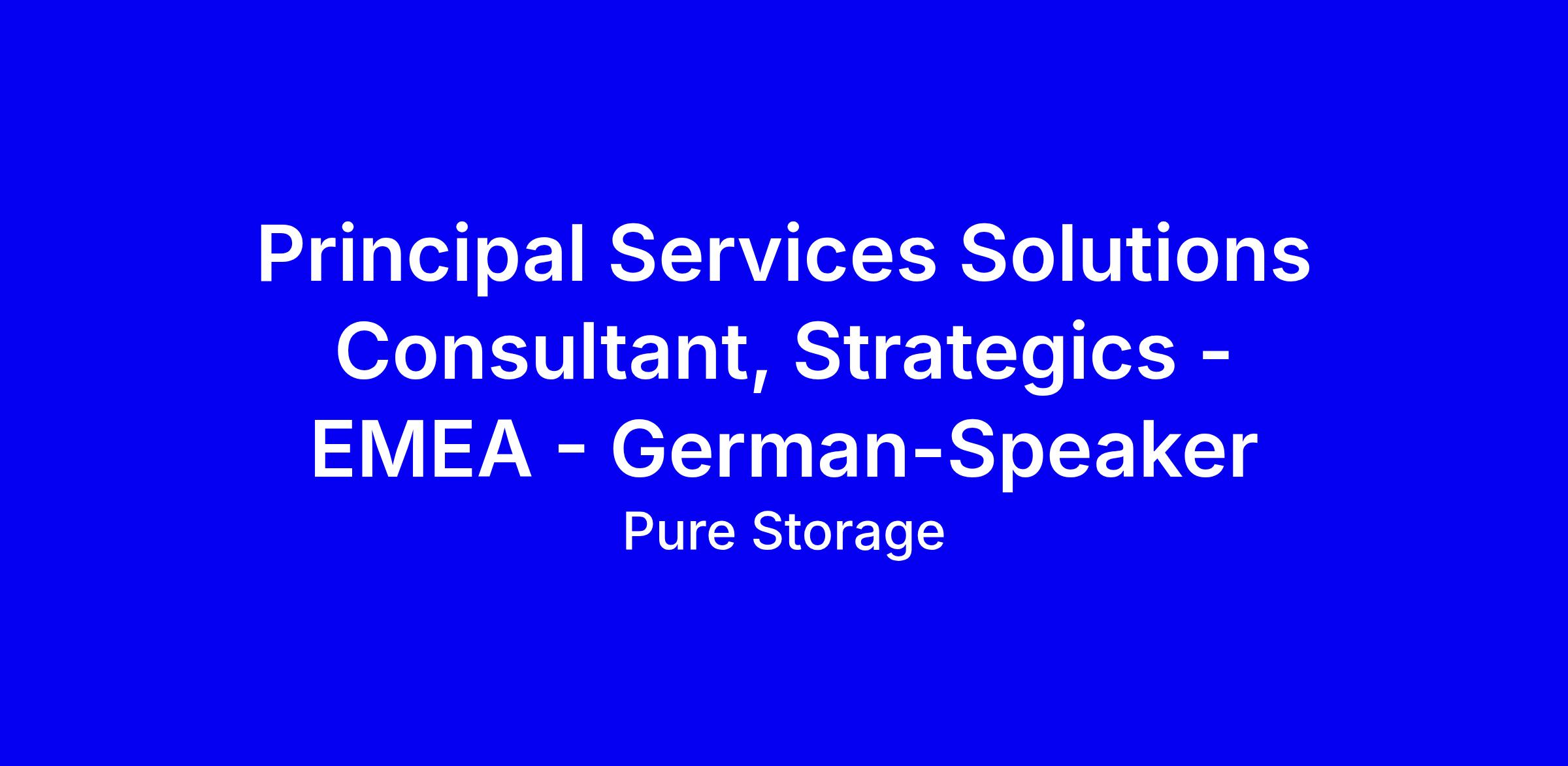 Pure Storage is seeking a Principal Services Solutions Consultant for Global and Strategic Accounts in EMEA who is fluent in German. In this senior role you will lead the services strategy for the company’s largest global and strategic accounts, architect multi million dollar deals across the portfolio and hyper scale services, and partner with Sales, SE and Product to deliver scalable, measurable outcomes. You will engage executives up to the C suite, develop new to market offerings, mentor others, and drive bookings in close synergy with account teams. Bring 15+ years in complex service solutions, deep EMEA GTM experience, and proven bid management with expertise in AI ML, data protection and hybrid cloud. English required; German preferred; travel up to 25%. Tailor your CV to highlight global deal wins, procurement experience, ROI case studies, and room clearing presentations.