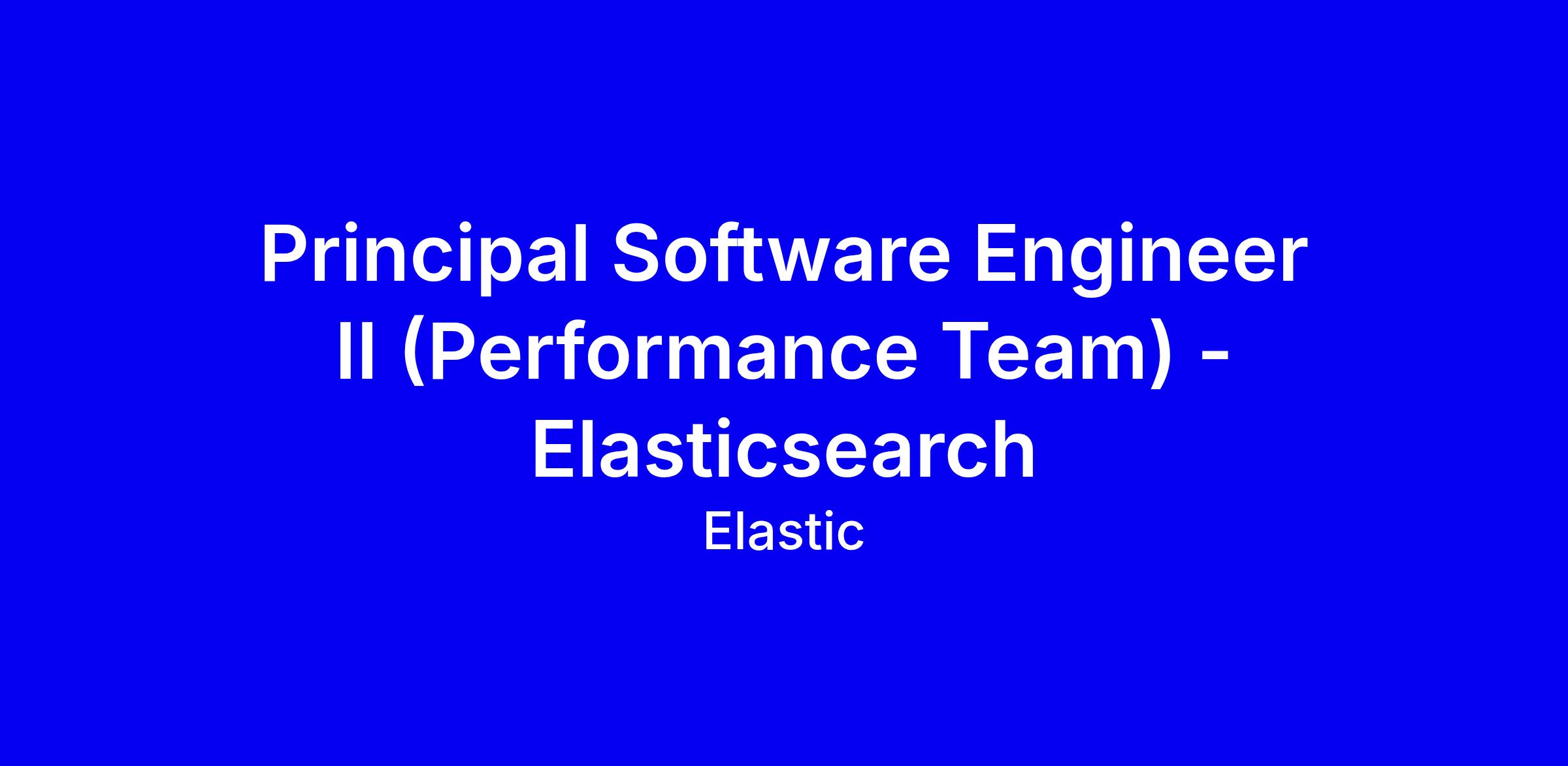 We are seeking a Principal Software Engineer II to join our Elasticsearch Performance Engineering area. This role will set the technical direction for our automated benchmarking tools. You'll define methodologies, architecture and design for testing Elasticsearch ingest and search workloads at cloud scale, including identifying performance regressions.