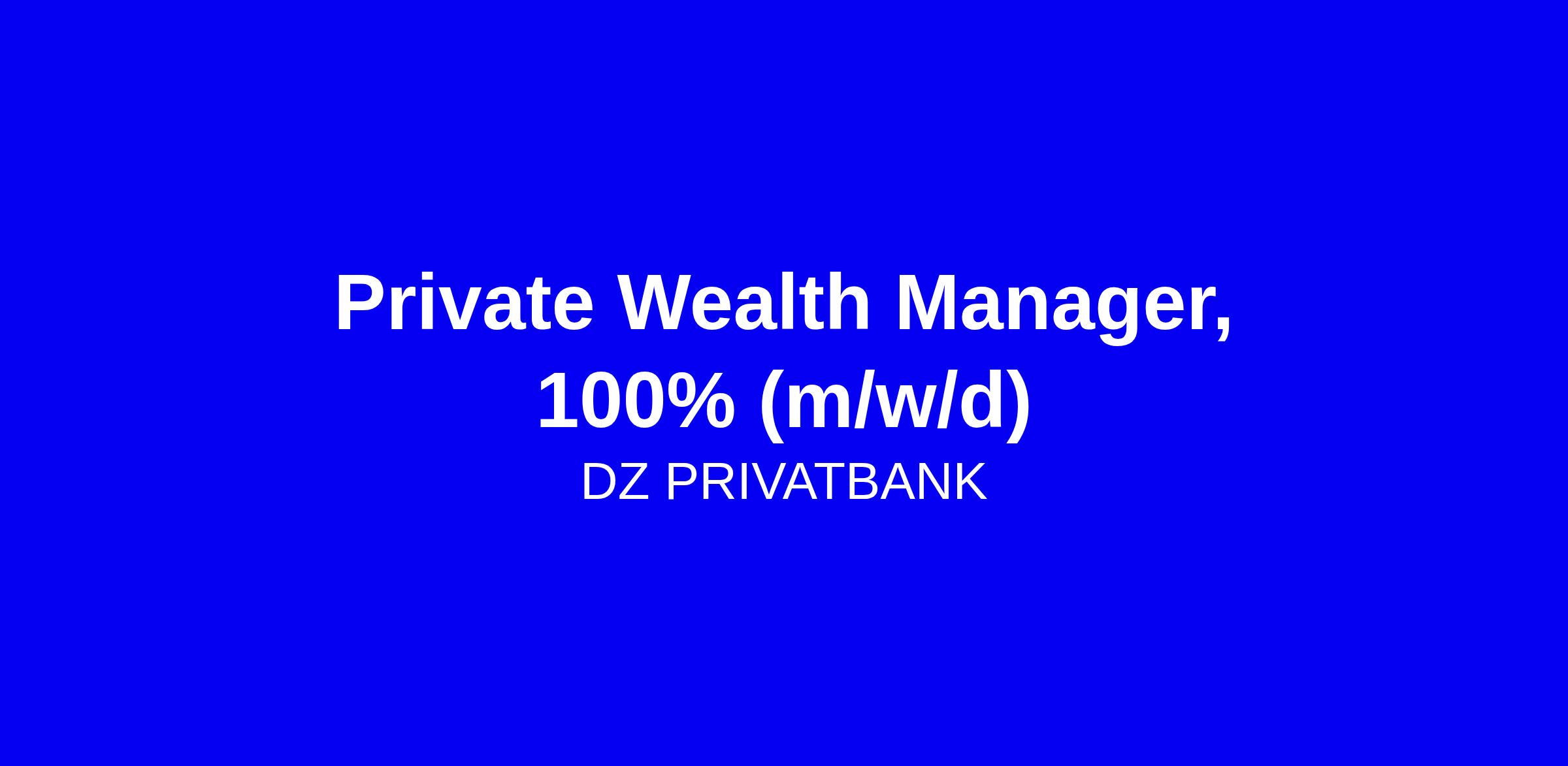 Als Private Wealth Manager 100% bei DZ PRIVATBANK in Zürich betreuen Sie vermögende deutsche Privatkunden, erschließen neue Neukundpotenziale und bauen Netzwerke mit VR Banken auf. Erwartet wird mehrjährige, nachweisliche Erfahrung im Wealth Management deutscher Privatkunden, idealerweise mit wirtschaftswissenschaftlichem Studium oder bankspezifischer Ausbildung (AZEK, CFA, CAIA, SBS) sowie fundierte Kenntnisse von Vermögensanlagen und Bewertungsverfahren. Sie bringen analytisches vernetztes Denken und ausgeprägte Problemlösungsfähigkeiten in komplexen Kundensituationen mit. Geboten wird eine verantwortungsvolle Tätigkeit, Perspektiven in der DZ BANK Gruppe, kollegiales Klima, Entwicklungschancen und flexible Arbeitsformen. Bewerben Sie sich online über unser System; richten Sie Ihre Unterlagen an Ina Kleemann, Bereich Personal, und arbeiten Sie sich in neue Themenbereiche ein.