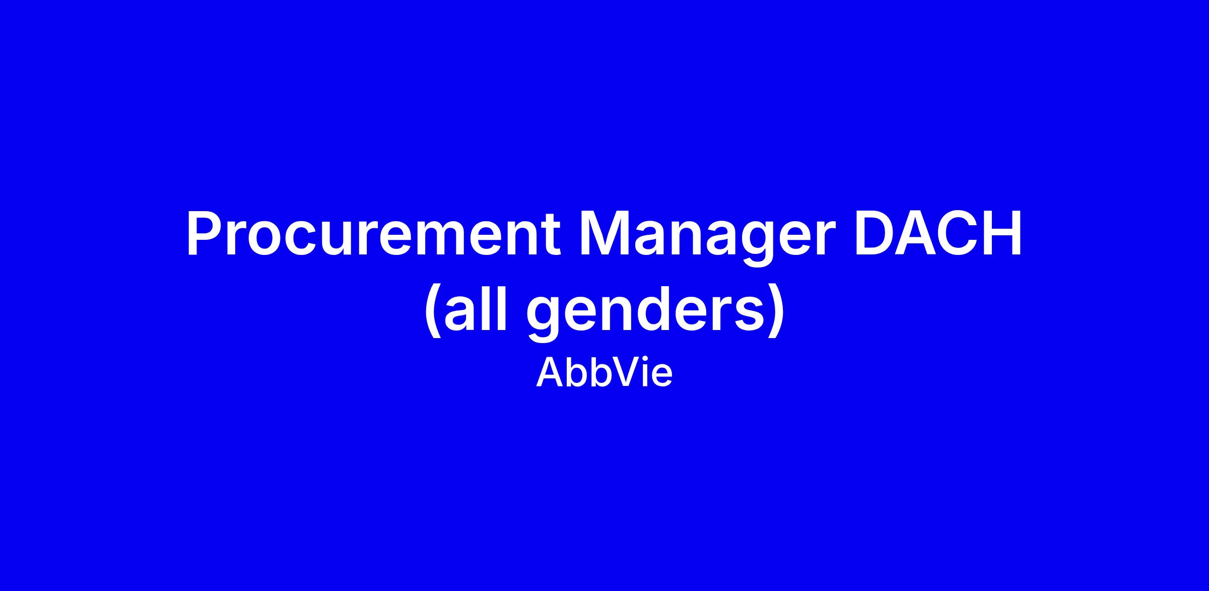 AbbVie is seeking a Procurement Manager DACH (all genders) to lead end-to-end procurement from strategic sourcing to contracting in Cham, ZG on site. You will own supplier selection, contract execution, and category strategy, while driving supplier diversity, sustainability and savings with strict policy compliance and continuity of supply. The ideal candidate has a bachelor’s degree in business or supply chain, five plus years in procurement, and fluent English and German, with hands-on source-to-contract experience. To stand out, quantify savings, demonstrate strong negotiation and cross-functional collaboration, and show how you translate AbbVie’s values into results. Attach a complete CV and be ready to discuss your impact.