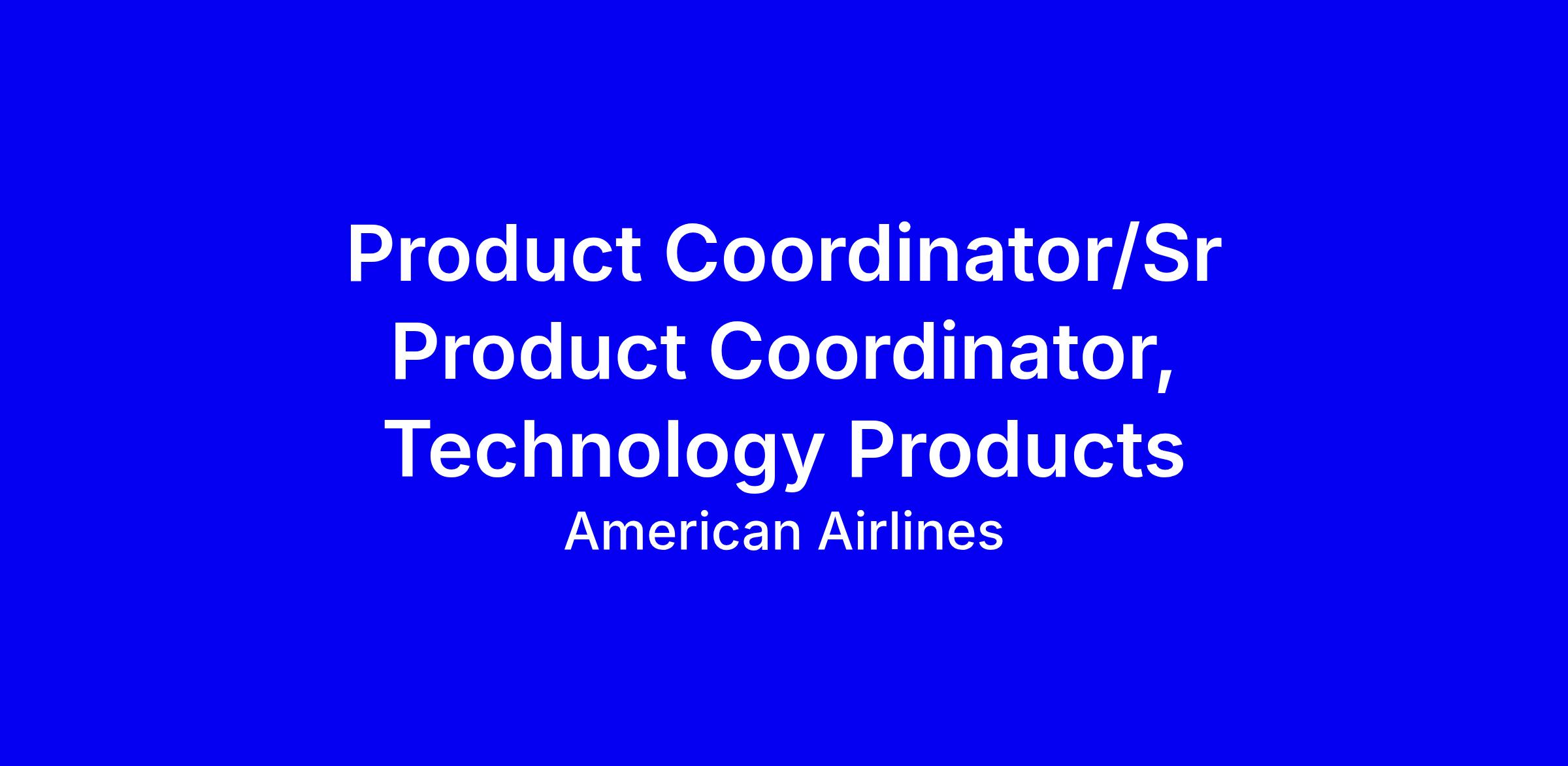 American Airlines seeks a Product Coordinator/Sr Product Coordinator, Technology Products, in Fort Worth, TX, onsite, joining the Decision Optimization team in IOC Technology. You will triage issues, perform bug testing, support product planning with data and insights, and partner with business and IT leadership across time zones to drive results. Requirements: a bachelor’s degree in technology, business or related field and 2+ years of relevant experience, with 3 years preferred. Key skills include Word, Excel, PowerPoint, Teams, SharePoint, Rally or similar tools, and Cognos or Tableau. To apply, tailor your resume to show backlog prioritization, cross-functional collaboration and measurable outcomes, and highlight your data analysis and enthusiasm for American’s airline.