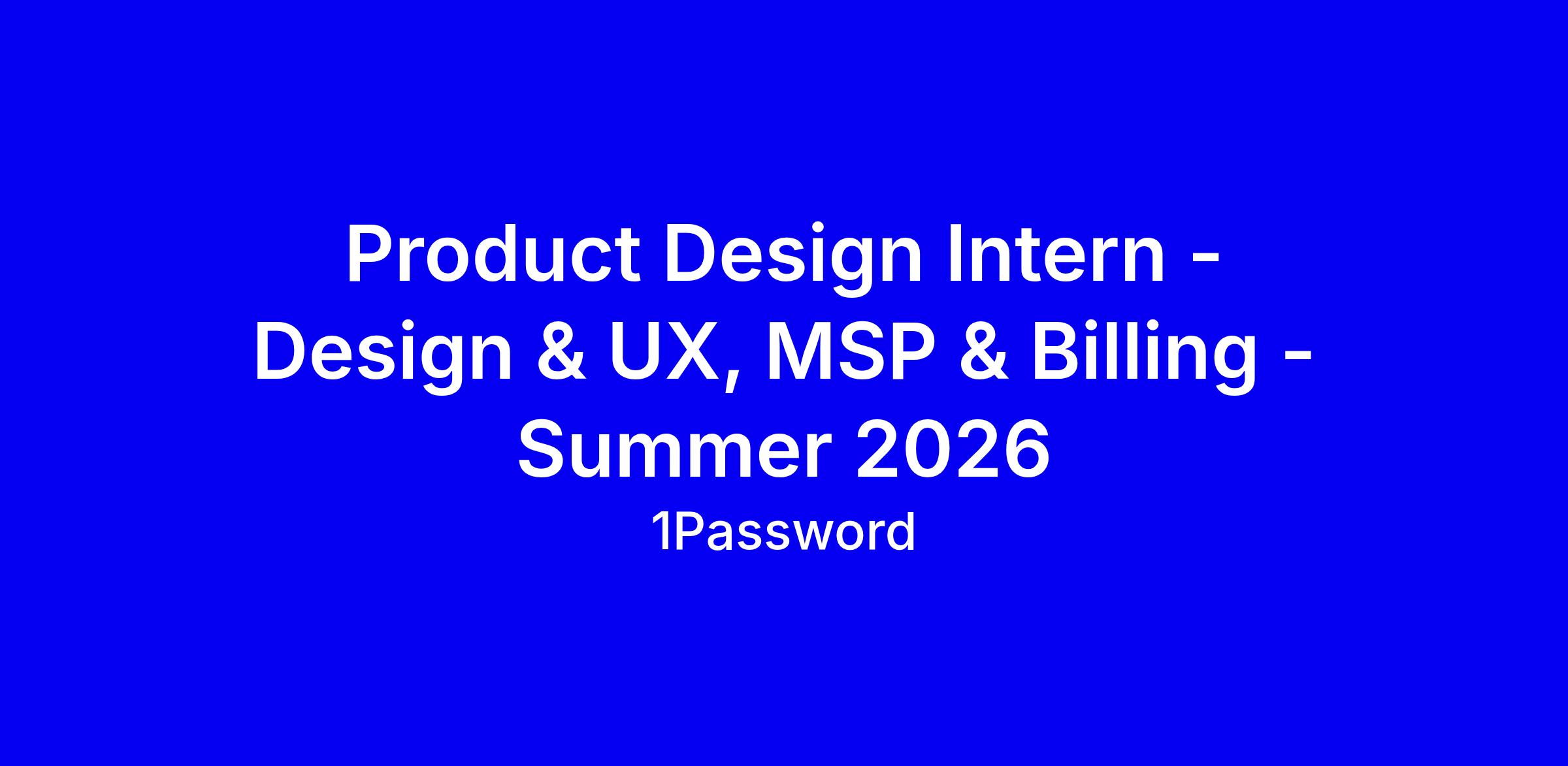 1Password is hiring a Product Design Intern to work remotely within Canada for a four month term from May to August 2026, focused on MSP and Enterprise Password Management. You’ll collaborate with Product Designers, PMs, UX researchers and developers to understand customer problems, develop prototypes and detailed feature specs in Figma using our design system, and participate in weekly critiques and user research. The ideal candidate brings confidence, humility, curiosity and strong teamwork, with bonus points for experience in user research. To strengthen your application, showcase a portfolio with end to end design work, explain how you learn from feedback, and demonstrate clear collaboration and communication. Highlight alignment with 1Password values and interest in AI powered security and remote culture.