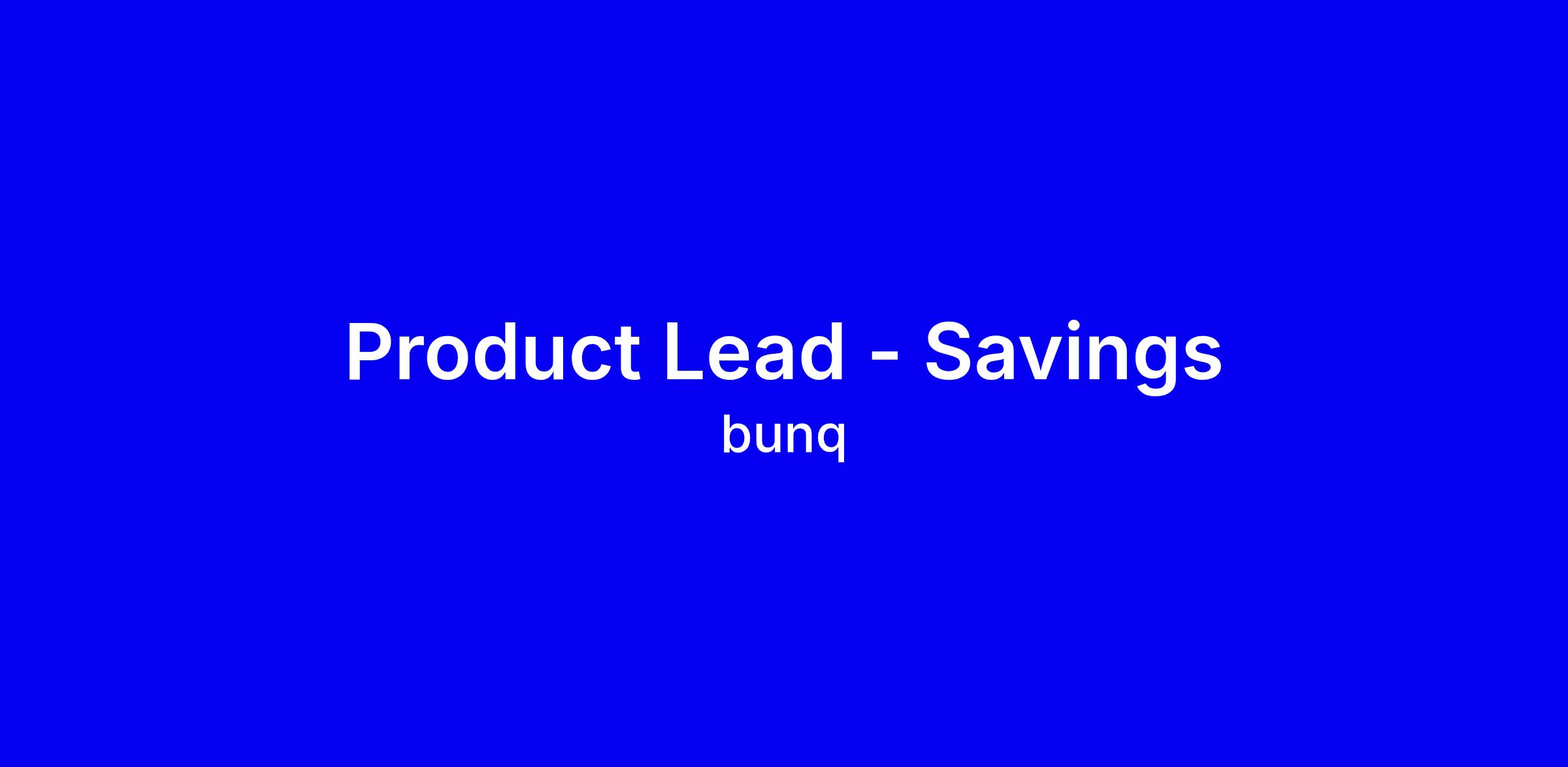 bunq is hiring Product Lead, Savings to own the vision and roadmap for savings products and steer international expansion, from mass interest to term deposits and FX savings, with a focus on a simpler, rewarding user experience. The ideal candidate has proven product management, a user obsessed UX mindset, strong data analysis skills, and a grounded sense of economics to react to macro trends, plus excellent English communication and cross functional collaboration with engineering, design, marketing and legal. In your application, highlight end to end product delivery, measurable impact on deposits and engagement, and examples where you translated insights into strategy. Include a concise case study or portfolio, and show alignment with bunq’s mission.