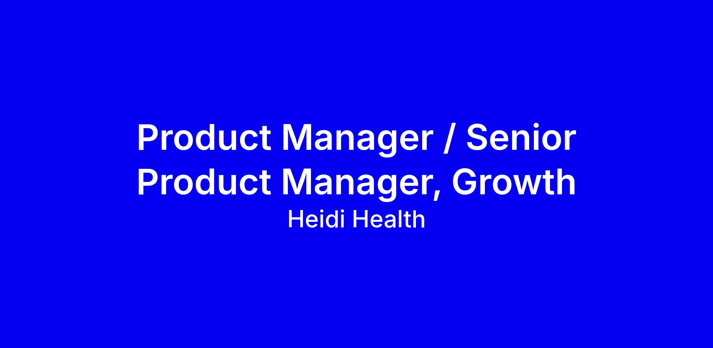 Heidi Health is hiring a Product Manager or Senior Product Manager, Growth to join the Melbourne onsite team and help turn users into advocates across distribution, engagement, monetisation and first-time experience. The role centers on rigorous discovery, clear strategy and rapid, data driven experiments working with Product, Design and Engineering to move key metrics such as signup conversion, retention and self-serve revenue. What matters most: comfort with ambiguity, strong design thinking, intellectual curiosity, founder mindset, solid analytics and clear communication; bonus for B2B SaaS or healthcare experience. In return, Heidi offers generous benefits and a chance to shape healthcare globally; apply with concrete outcomes, dashboards and stories of shipped impact.