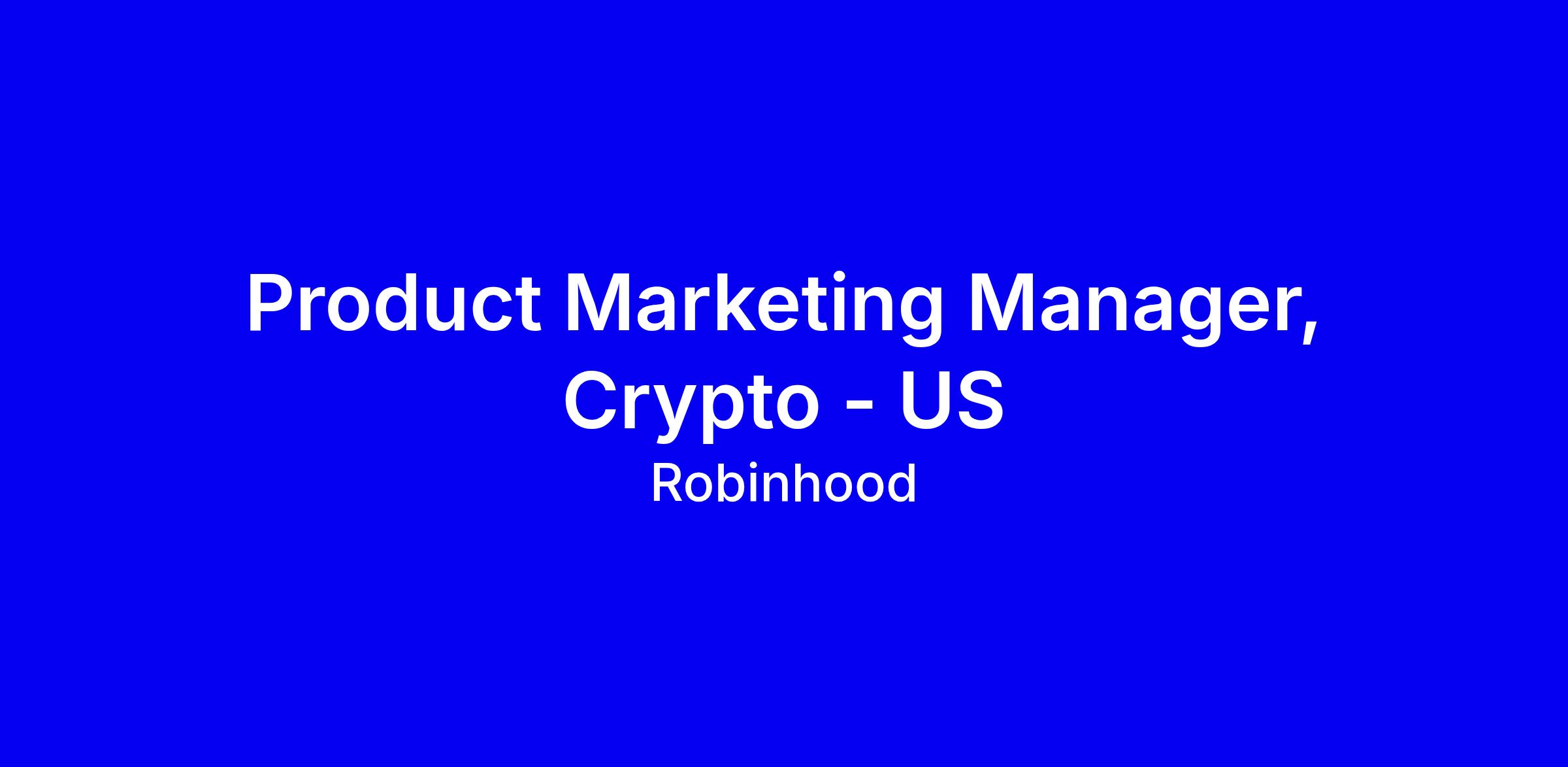 As the Product Marketing Manager, you’ll play a key role in how we connect with customers and drive growth for Robinhood Crypto in the US! In this role, you’ll lead go-to-market strategy for new products and features and help shape how we bring our crypto offering to market in a highly regulated and fast-moving environment.