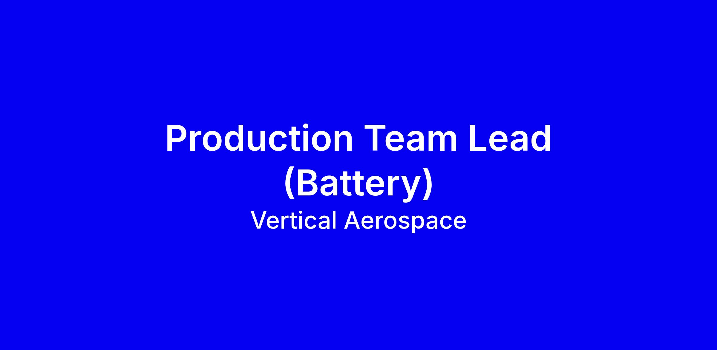 At Vertical Aerospace, we are pioneering the future of electric aviation. As we scale production of our world-leading electric aircraft, we are looking for a Battery Production Team Lead to take ownership of our battery manufacturing area and play a critical role in delivering safe, high-quality, and cost-effective production.