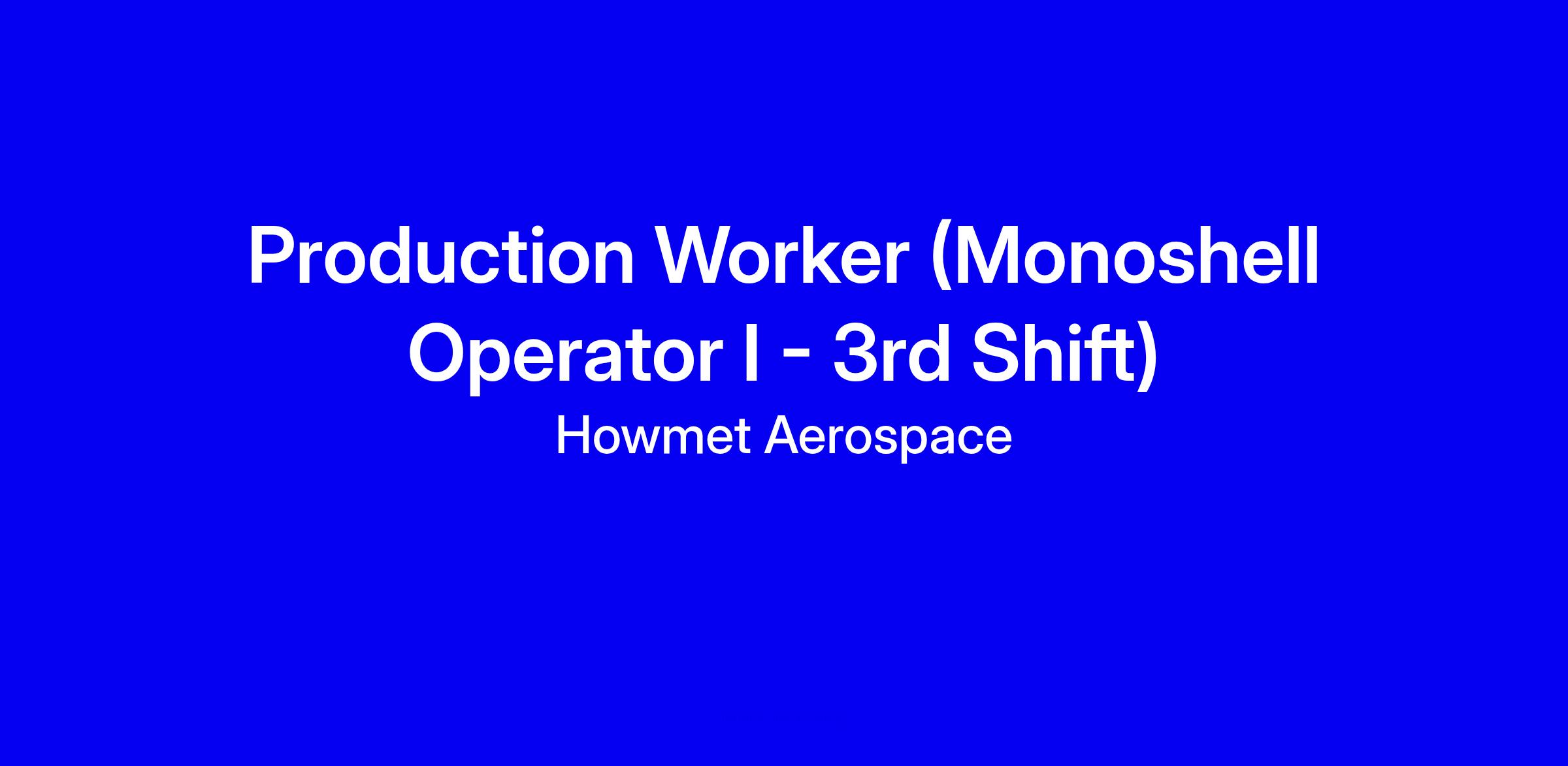 Howmet Aerospace seeks a Monoshell Operator I for Dover NJ on the midnight shift 10 PM to 6:30 AM, training on first shift 6 AM to 2:30 PM. Starting pay is $24.79 per hour, rising to $27.35 after 12 months, plus a shift premium for off shift and a benefits package. The role monitors the dipping robot, adjusts controls, ensures coat quality, records materials, and may perform foundry tasks, with strict EHS and ITAR compliance. To apply, show reliability, willingness to work nights, safety and quality focus, and any manufacturing or QA experience; HS diploma, US work authorization, and residency within 50 miles of Dover NJ; no visa sponsorship or relocation.