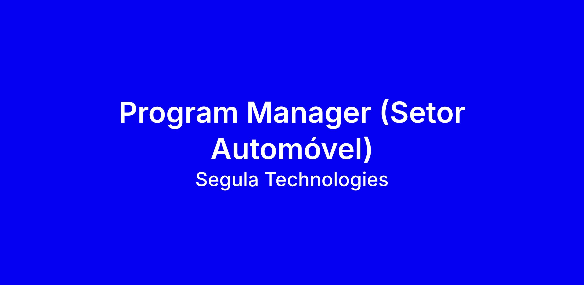 Procuramos um/a Program Manager para liderar projetos de lançamento de novos veículos no setor automóvel, integrando um grande grupo OEM internacional.