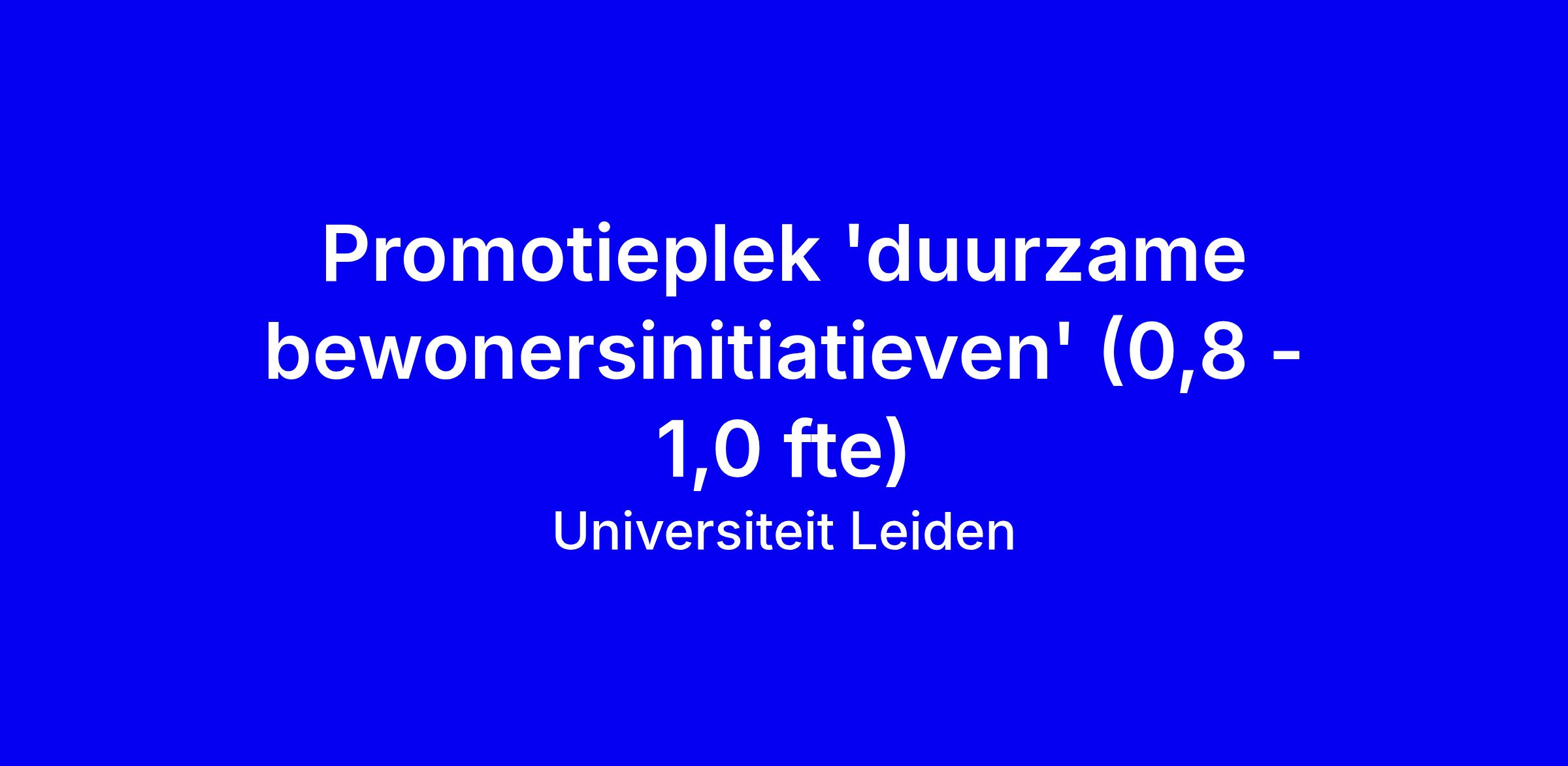 Promotieplek ‘duurzame bewonersinitiatieven’ (0,8 - 1,0 fte)