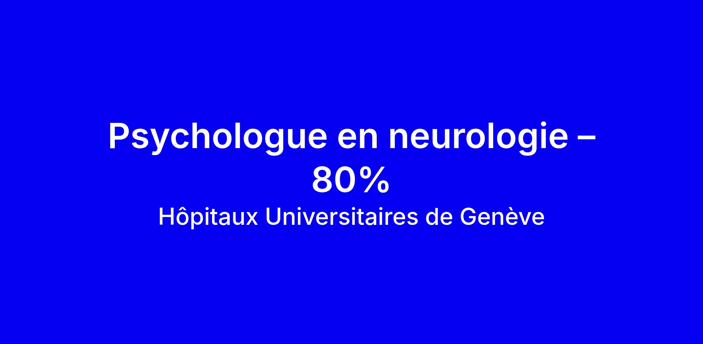 Les HUG recherchent un psychologue en neurologie à 80 %, remplacement maternité, pour le Département des neurosciences cliniques à Genève. Vous réalisez des évaluations neuropsychologiques chez des patients atteints de pathologies neurologiques ou neurochirurgicales, participez à la prise en charge aiguë et à la neurorééducation et proposez des interventions aux équipes; vous pouvez contribuer à l’enseignement et à la recherche. Profil: Bachelor et Master en psychologie, MAS; le titre FSP en neuropsychologie est un atout; expérience clinique et autonomie en équipe pluridisciplinaire, et un esprit d’innovation en neuropsychologie. Contrat CDD jusqu’au 31/12/2026, entrée 01/03/2026, candidature jusqu’au 18/02/2026. Postulez via la plateforme avec lettre motivation, CV, diplômes et deux derniers certificats; Dre R. Ronchi.
