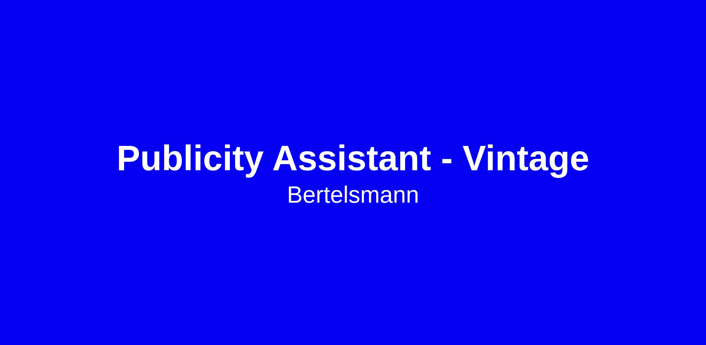 Publicity Assistant - Vintage at Bertelsmann is a London onsite role with hybrid working in the Vintage Publicity team, paying £29,000 plus benefits. You will provide administrative support, coordinate travel and meetings, handle media requests and budgets, assist campaigns and events, and supervise work experience interns. Essential traits include a love of books, strong organisation and time management, excellent written and verbal communication, the ability to work under pressure, and a proactive collaborative mindset. To apply, submit your CV and cover letter by 11:59pm on 15 February 2026, and include a 200 word max reflection on a book that recently caught your attention through a piece of media. The process is two stages, with a virtual first interview and an in-person second interview.