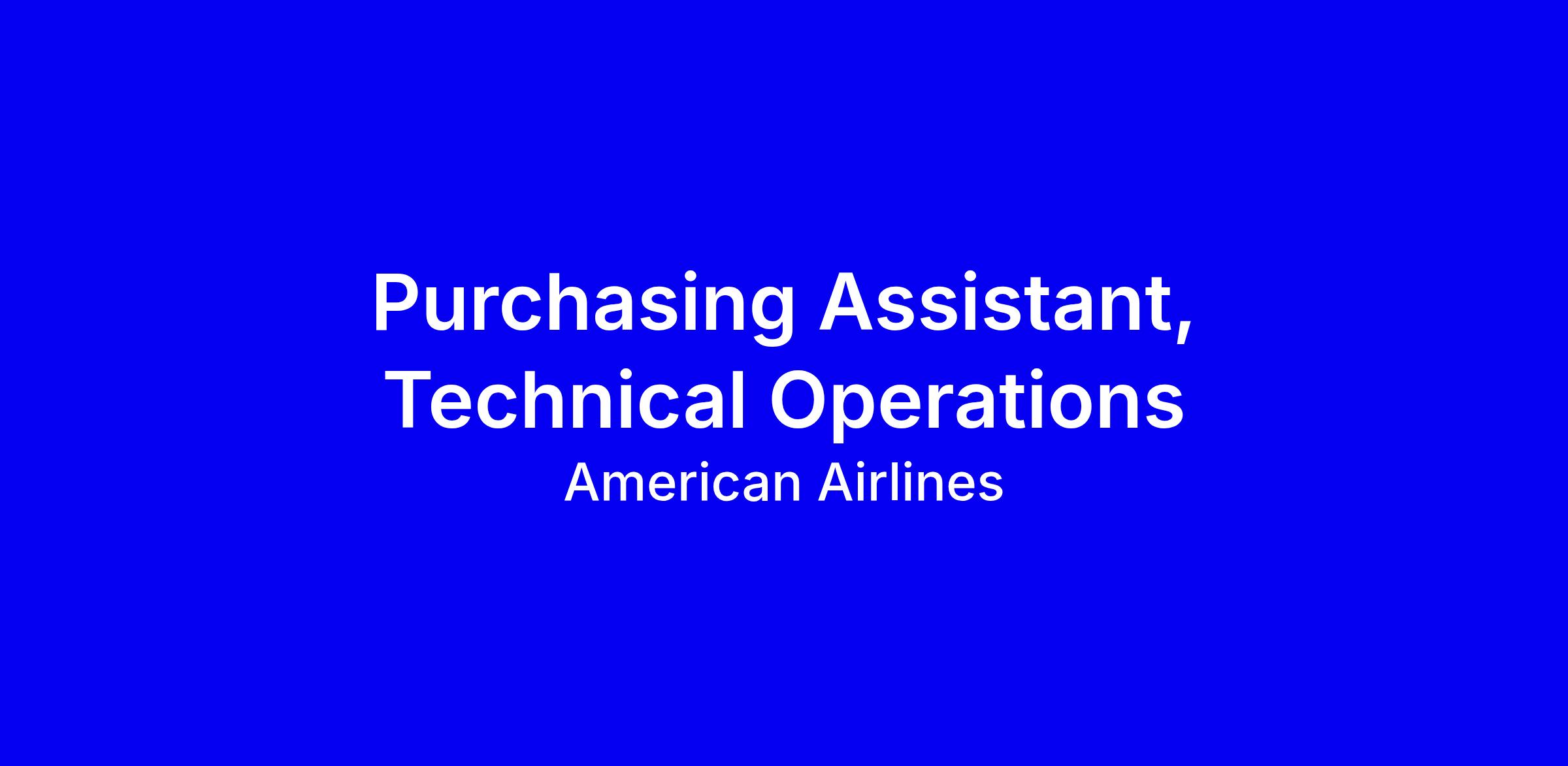 American Airlines is seeking a full-time onsite Purchasing Assistant in the Technical Operations team in Fort Worth, TX. You’ll support supplier management by updating SCEPTRE, COUPA and Workbrain for supplier orders, invoicing and PTO/payroll, coordinate supplier meetings and onboarding, issue and correct purchase orders, repair orders and supplier invoices, assist with new-hire hardware and software, expedite orders as needed, and help resolve discrepancies while backing up the team. Requirements include a high school diploma or GED and 1–2 years in an office setting; preferred are experience with SCEPTRE, COUPA and Workbrain or an associate degree with relevant office experience. Proficiency in MS Office and security badge eligibility are important; for a strong application, tailor your resume to show vendor coordination, system updates and onboarding support, and note your ability to work onsite and navigate security processes. Benefits include travel perks, day-one health coverage and more.