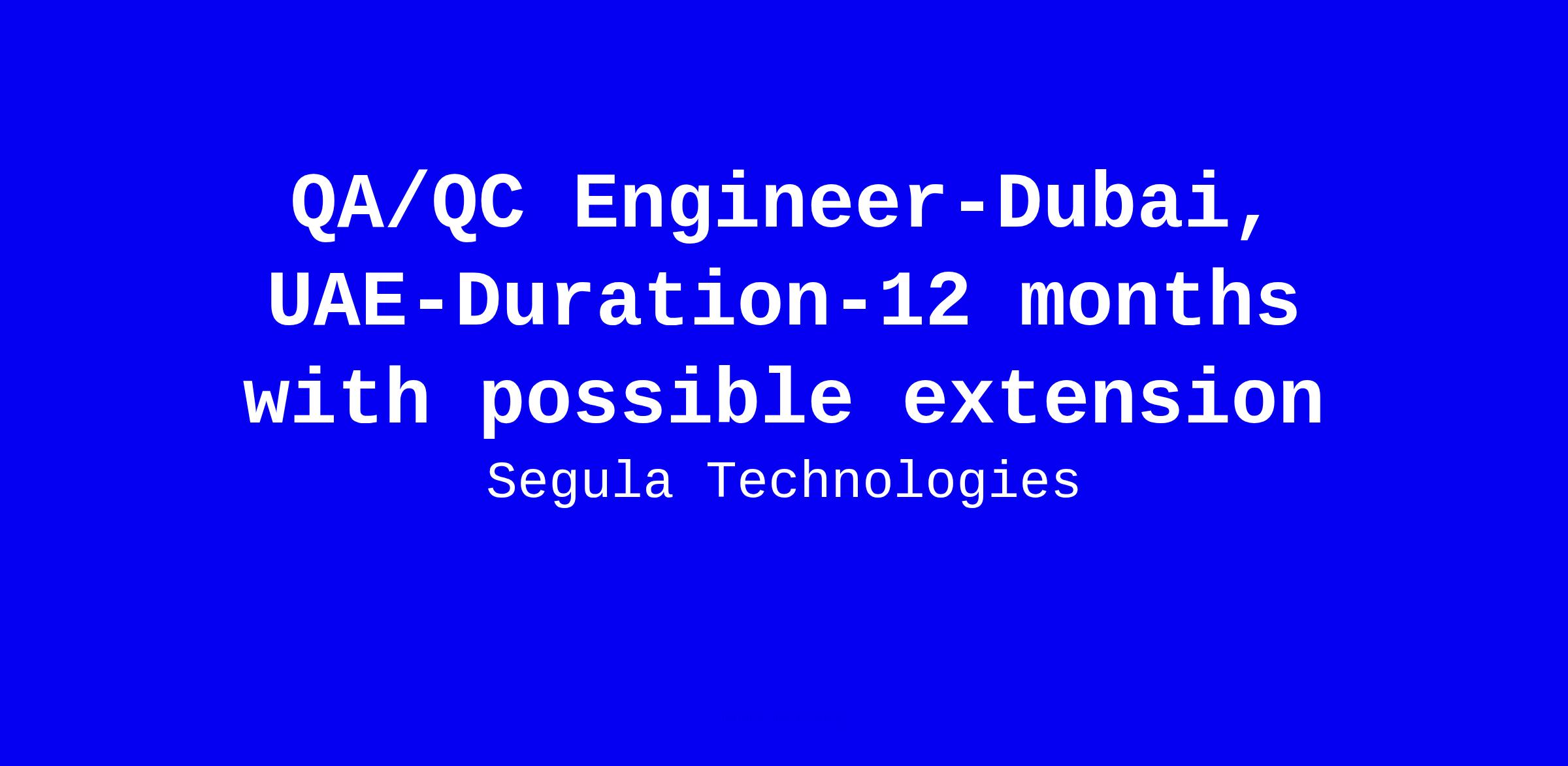 Segula Technologies is seeking a QA/QC Engineer for a 12 month Dubai on-site role with possible extension. The role centers on controlling QA/QC activities, ensuring inspections and surveillance, timely follow up of ITRs per ITPs by liaising with the QA/QC engineer and client representative, performing Material Receiving Inspections and maintaining records, managing site non-conformities and close outs, supporting installation, testing and commissioning, coordinating with the installation team, and maintaining MRIR, ITP and ITR registers with timely reporting. Requirements include at least 3 years of on-site inspection experience, Electrical/Electronics Technician background, English communication, MS Office proficiency, and flexible hours including night shifts. Shortlisted candidates only.