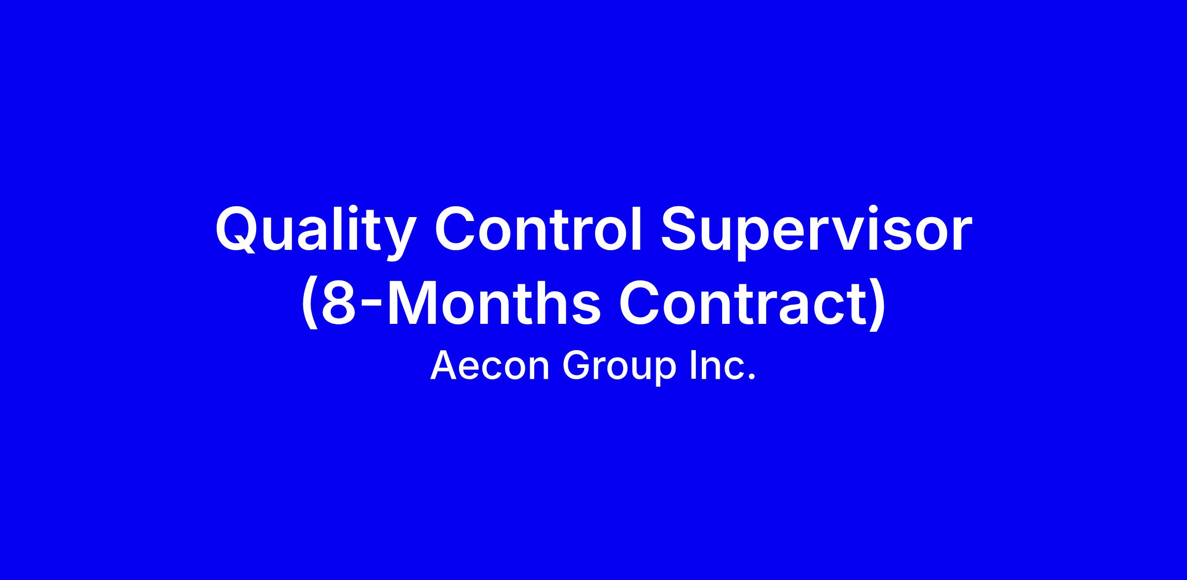 Reporting to the Project Quality Manager, the Quality Control Supervisor – Balance of Plant (BOP) will be responsible for the supervision and oversite quality control inspection staff of the in the Balance of Plant segment. The QC Supervisor – BOP will work with other Aecon sectors and Alliance partners to monitor the construction systems and processes that will achieve outstanding nuclear safety metrics and cost-effective quality operational results in support of the DNNP.