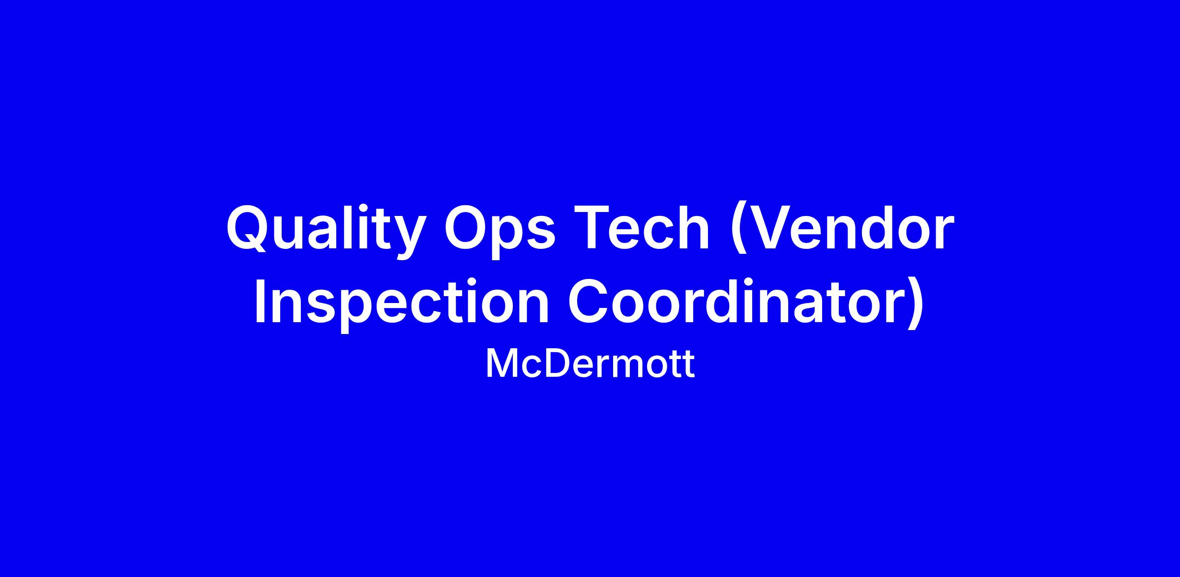 McDermott seeks a Quality Ops Tech (Vendor Inspection Coordinator) for a full time onsite role in Dubai. You’ll be the focal point for craft supervisors on standards and inspection tools, keep inspection forms and quality records up to date, and manage Corrective Action Register issues between the facility, vessel and Administrative Office. You’ll assist with measuring non-conformances, support ISO 9001, ISO 14001, ISM and ISPS audits, and track KPIs and key registers such as ladders, below-hook devices, CAR, training, and MSDS. Essential: high school diploma, strong computer skills, excellent organization and communication, and the ability to work without supervision. To apply, tailor your resume to show quality, audit and cross-functional coordination experience, include concrete examples of process improvements or delay reductions, and highlight familiarity with codes and records management.