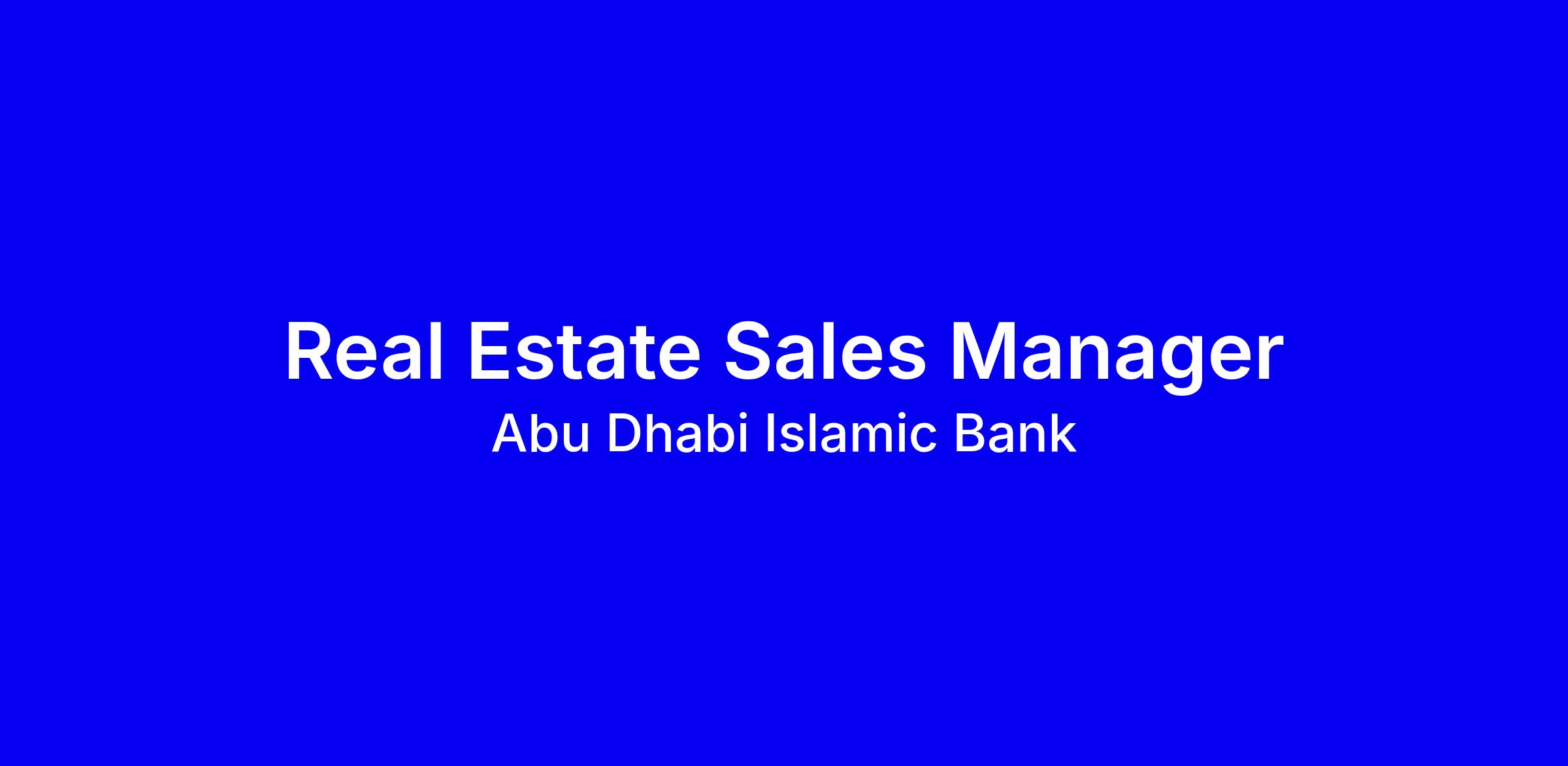 Abu Dhabi Islamic Bank is seeking a Real Estate Sales Manager to drive the Real Estate portfolio across the UAE, lead a Sales/RO team, and hit a monthly target of AED 15 million while delivering profitable growth through planning and strong client relationships. You will identify and solicit new clients, deepen existing ones, make regular visits nationwide, and ensure bookings stay within product parameters with timely approvals. Ideal candidates hold a university degree with seven years of relevant experience (five in Real Estate), strong time management, English and Arabic preferred, and solid knowledge of ADIB products. To apply, tailor your resume to show leadership and revenue impact with concrete UAE market examples.