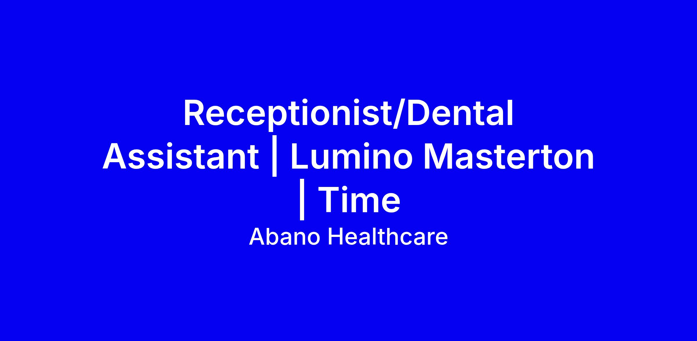 Lumino Masterton, part of Abano Healthcare, seeks a full-time Receptionist/Dental Assistant; Mon to Fri, 7:45 am to 5 pm. You’ll be the first point of contact, greeting patients, scheduling and confirming appointments, handling payments, rescheduling and banking, assisting with sterilisation and supporting the dental team, while maintaining accurate patient records and confidentiality. The role is predominantly admin with DA work required as needed, so strong communication, attention to detail and the ability to multitask are essential. Prior reception or dental assistant experience helps but is not essential; a warm, positive team mindset and basic dental knowledge are advantageous. Apply now; you’ll receive an automated email with questions for a relaxed chat, and we’ll be in touch quickly.