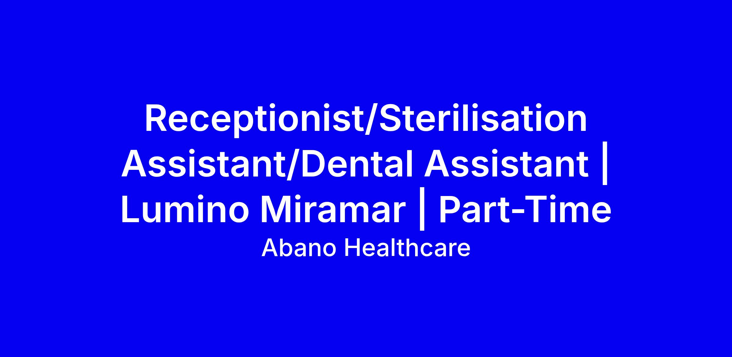Lumino Miramar is looking for a part-time Receptionist / Dental Assistant / Sterilisation Assistant to join our team.
